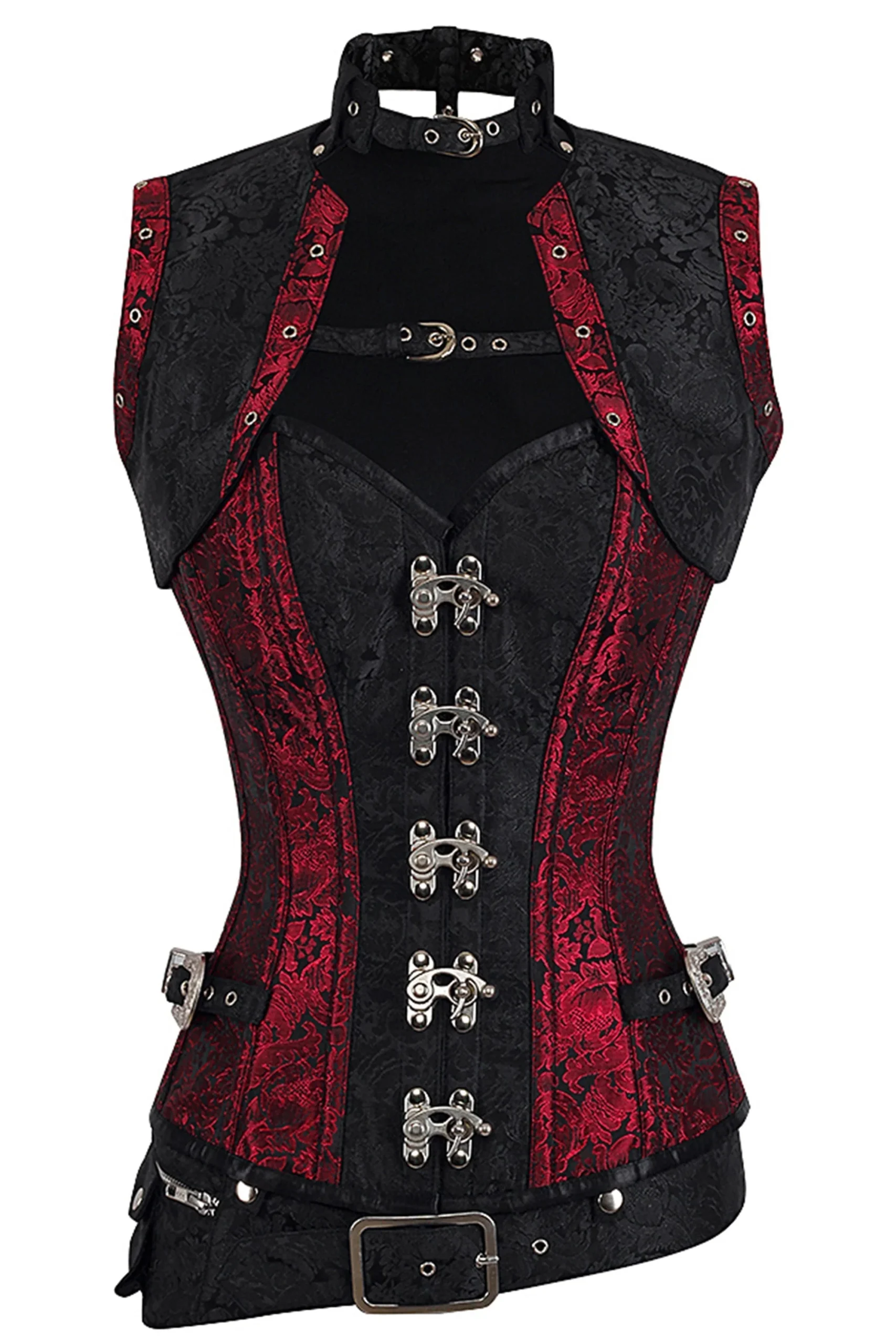 https://corset-story.nl/products/red-and-black-brocade-steampunk-overbust-corset-with-swing-hooks-and-shrug