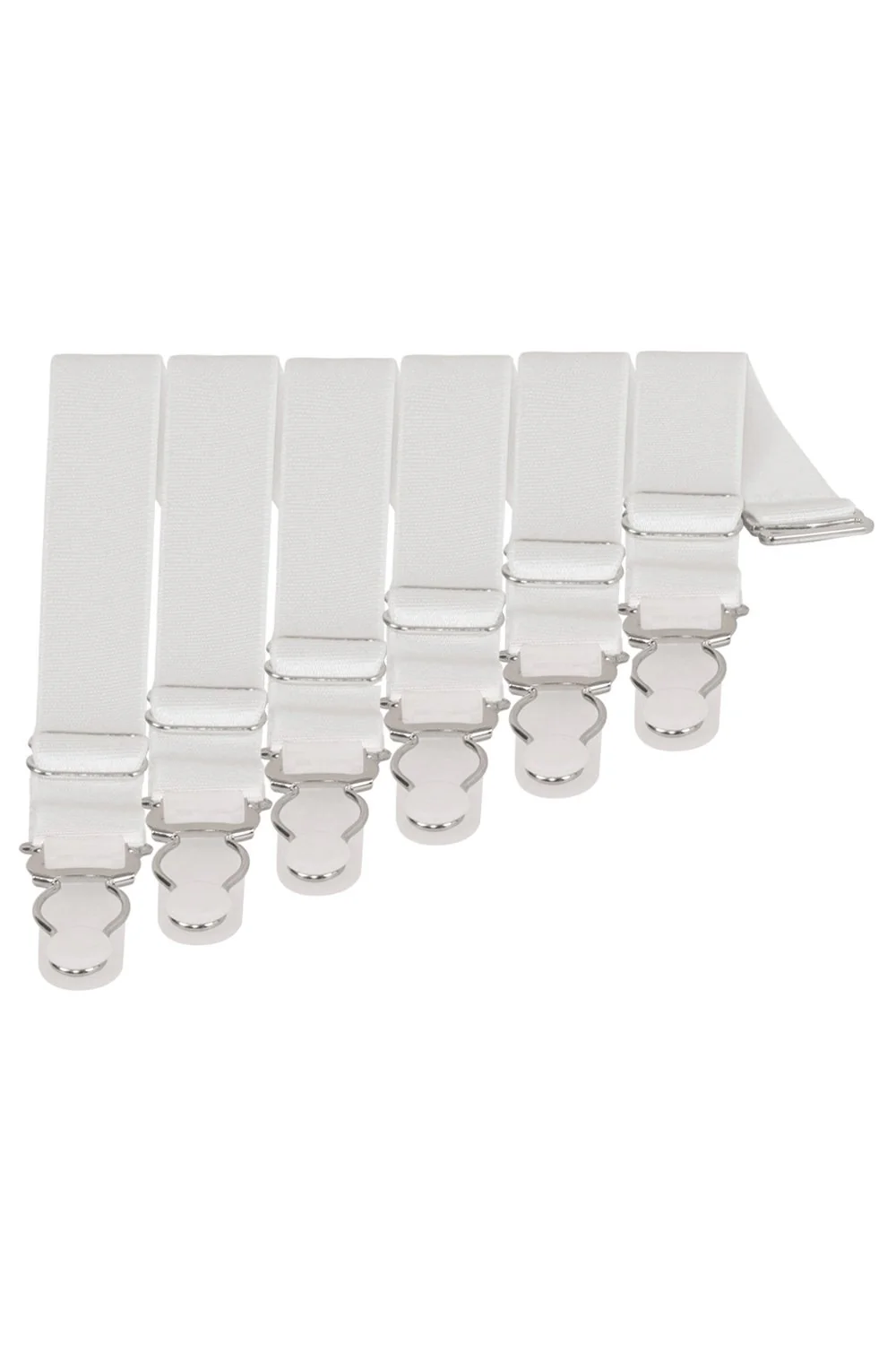 Our 6 white suspender clips are elasticated and adjustable. They are perfect to wear under your wedding gown with a white under bust to create a stunning hourglass figure.