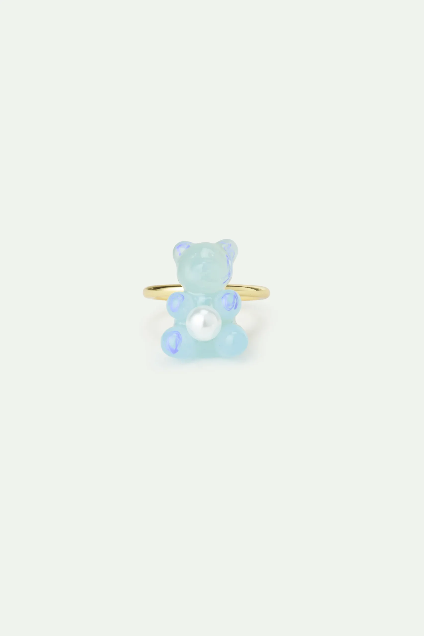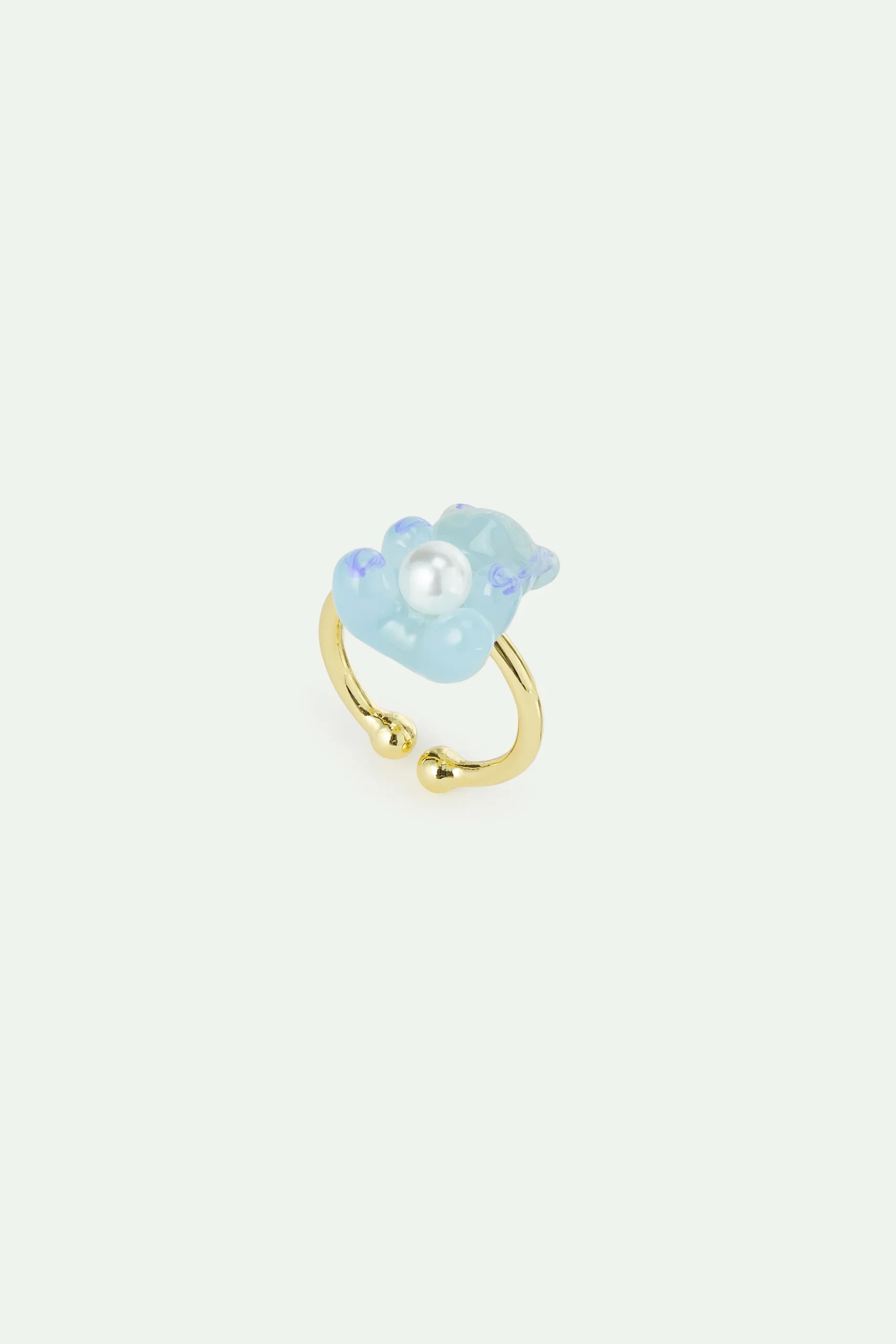 Bague ajustable dorée à l’or fin, bonbon nounours candy bleu délicatement peint à la main, perle fantaisie blanche. La collection Miam Miam Candy célèbre les douceurs enfantines avec des parures gourmandes et colorées.