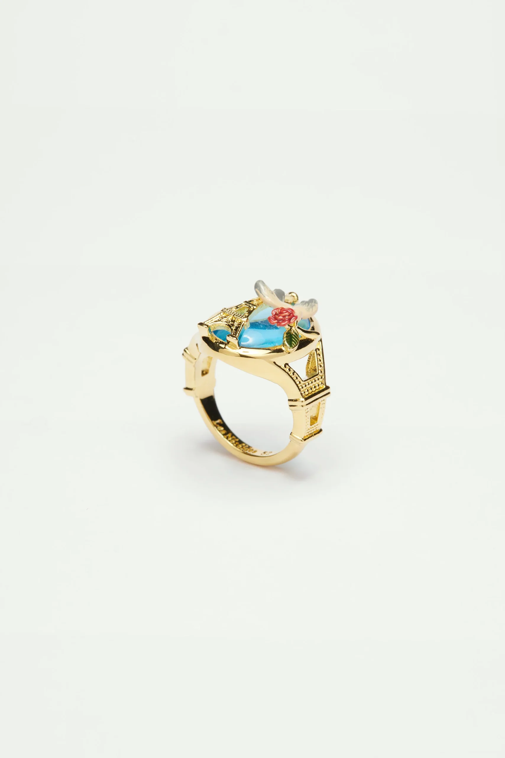 Bague cocktail, carte postale de Paris, rose et moineau peints à la main, Tour Eiffel en laiton dorée à l’or fin. Embrassez ces souvenirs fantasmés de Paris à travers des images typiques de la vie des parisiennes. Une série de bijoux à ramener comme souvenirs de voyage.