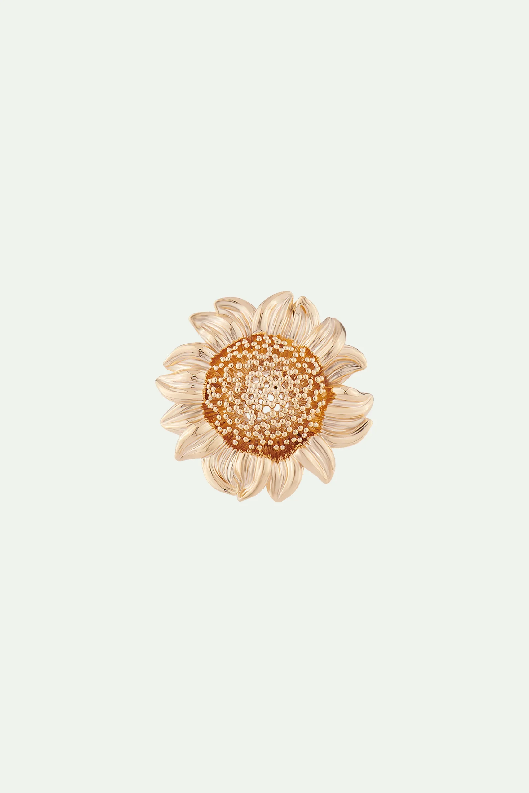 Bague cocktail fleur de tournesol en laiton doré ajouré. Avec sa taille imposante, elle sublime instantanément votre tenue.