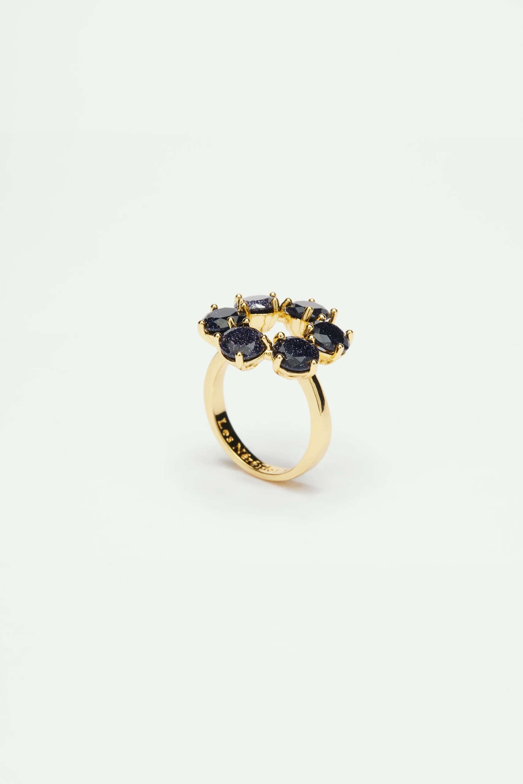 Composées de 6 pierres couleur bleu nuit pailleté, cette bague à taille apportera une touche de raffinement à votre style… La Maison Les Néréides capture pour vous l’essence d’un ciel bleu nuit étoilé, et l’emprisonne dans ses créations haute fantaisie, ne manquez l’iconique Diamantine ! Bague Fine : laiton doré à l’or fin, pierre de verre taillé, colorama bleut nuit pailleté.