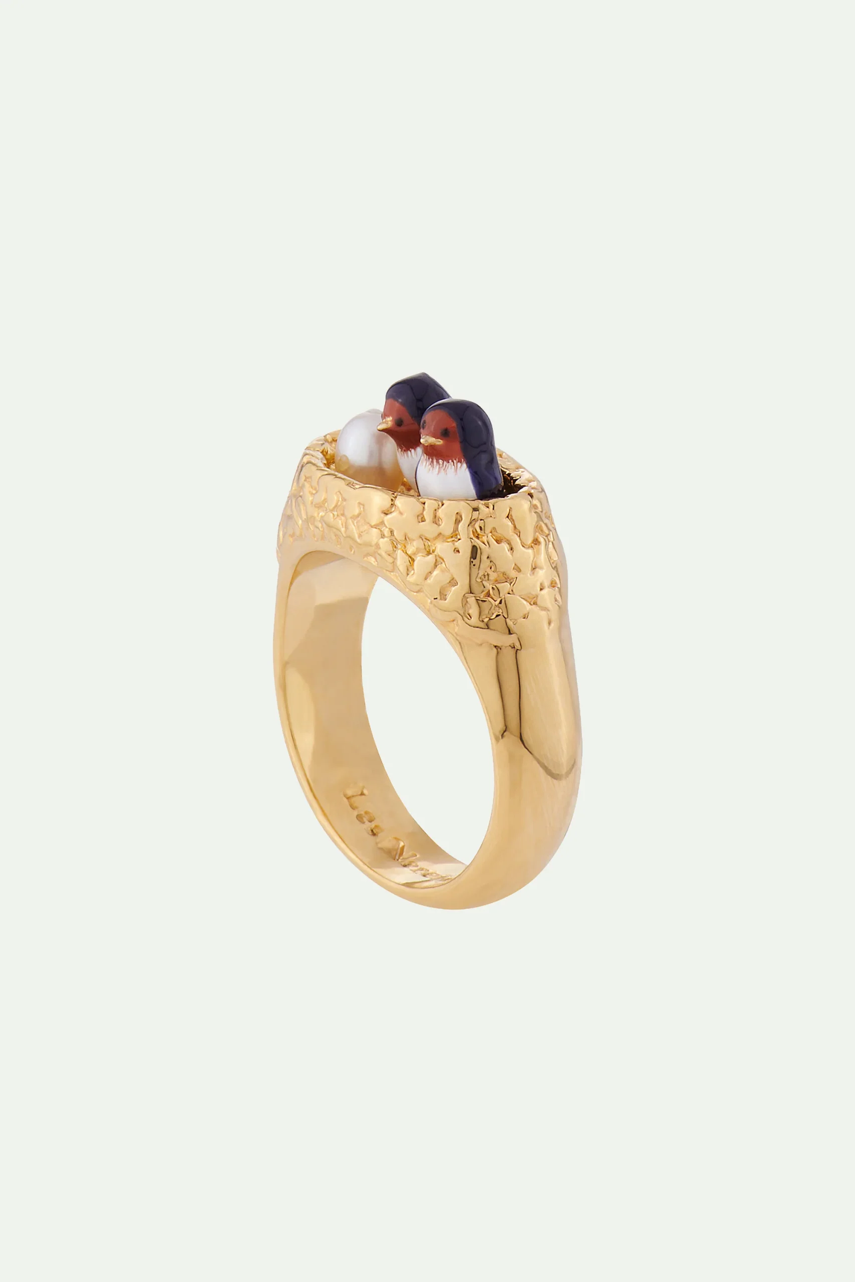 Bague à Taille Femme : laiton doré à l’or fin, hirondelle peinte à la main.