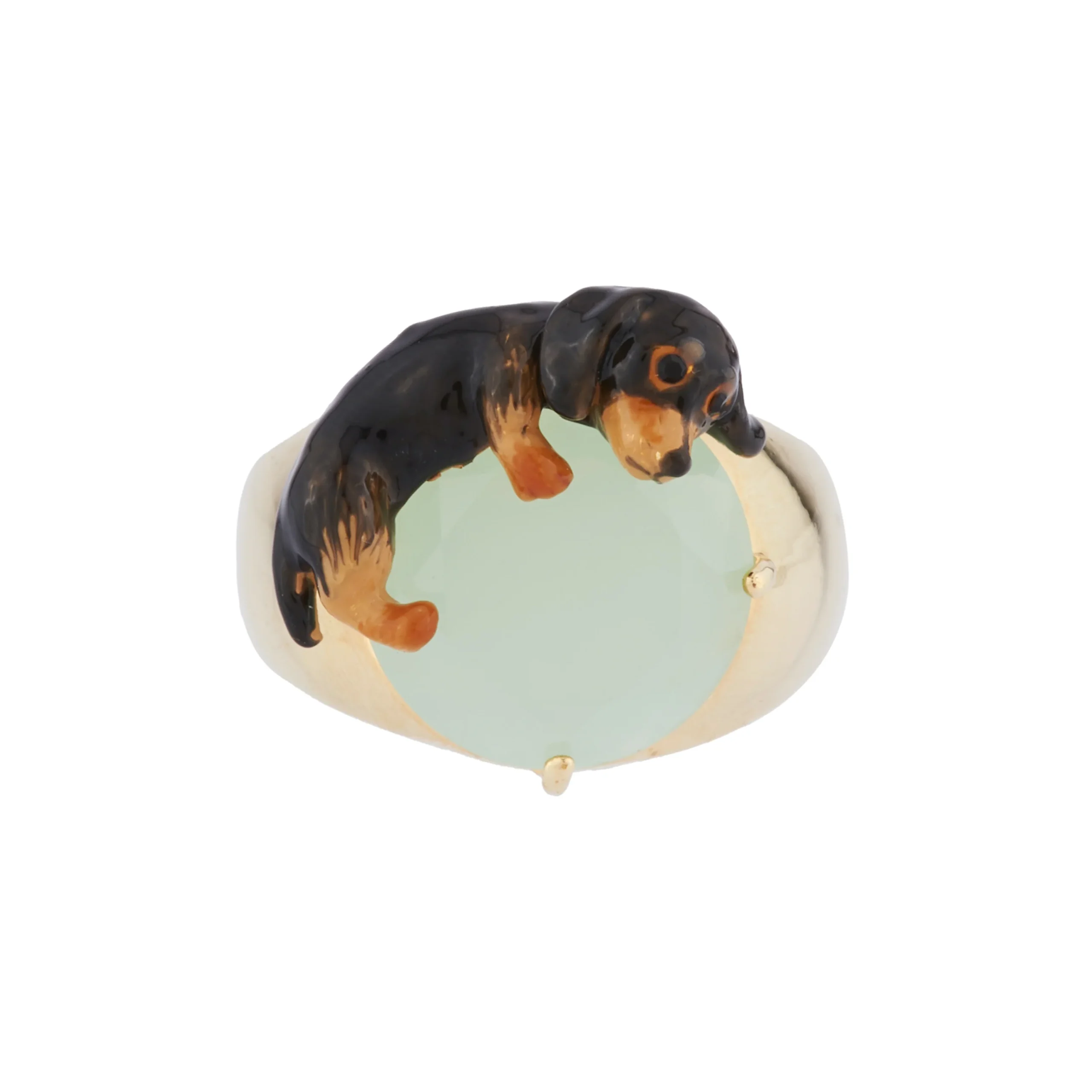 Bague petit teckel allongé sur verre taillé