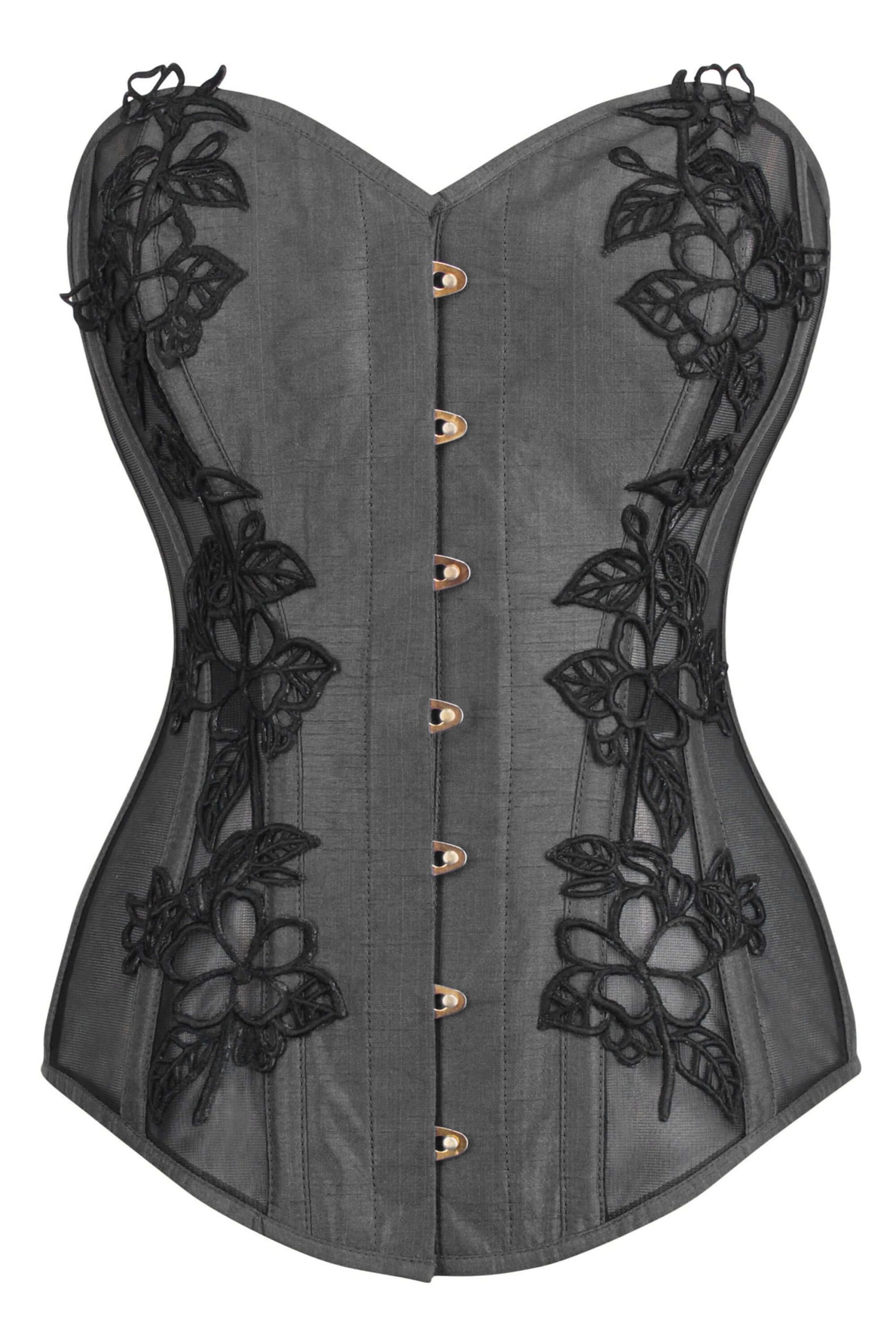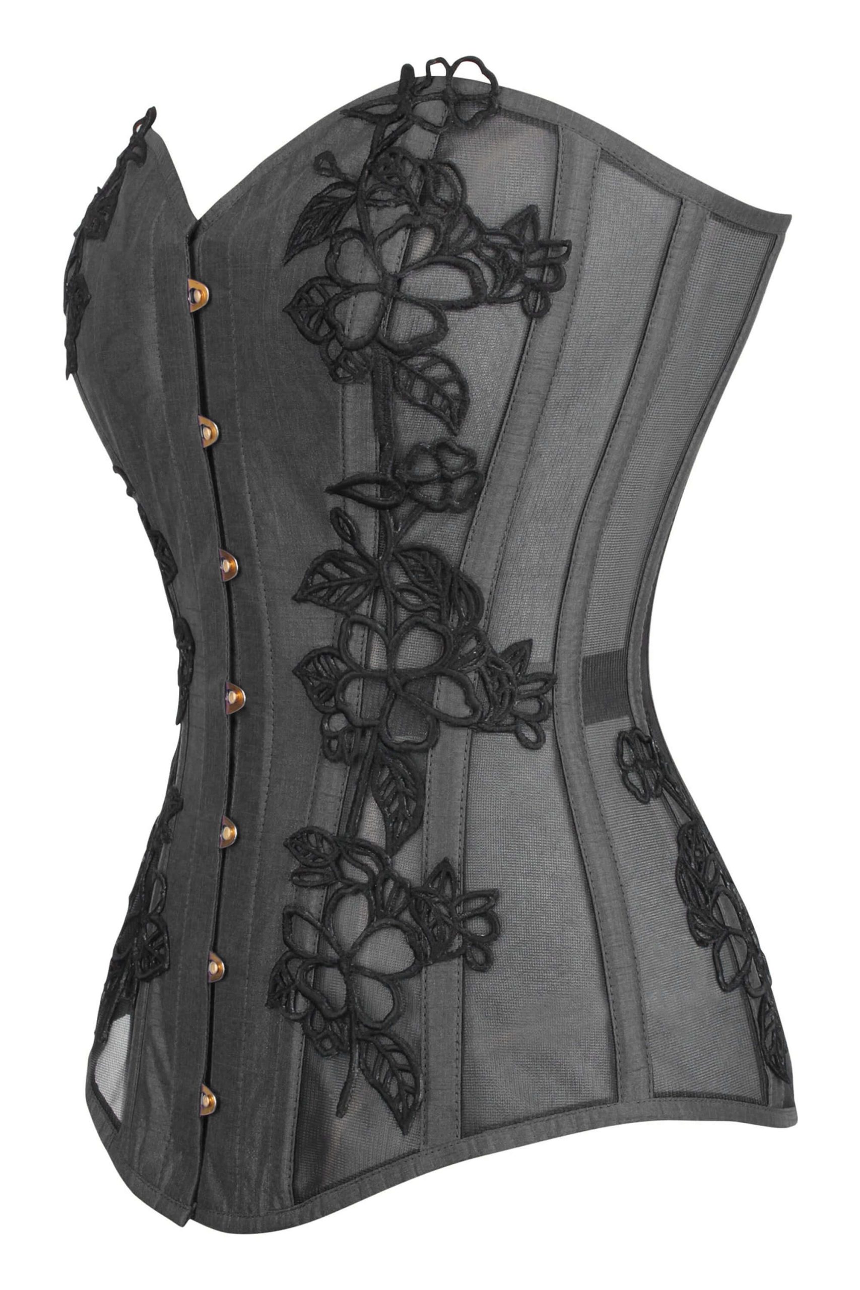 • Caractéristiques de conception du corset : panneaux en maille, applique en dentelle
