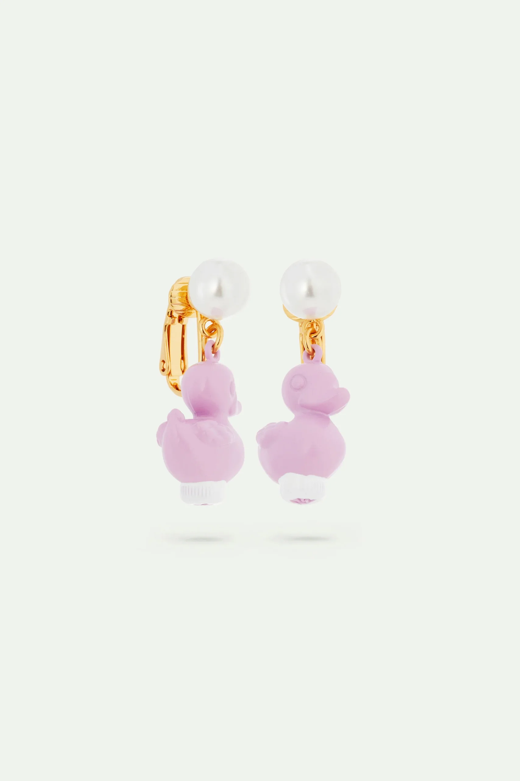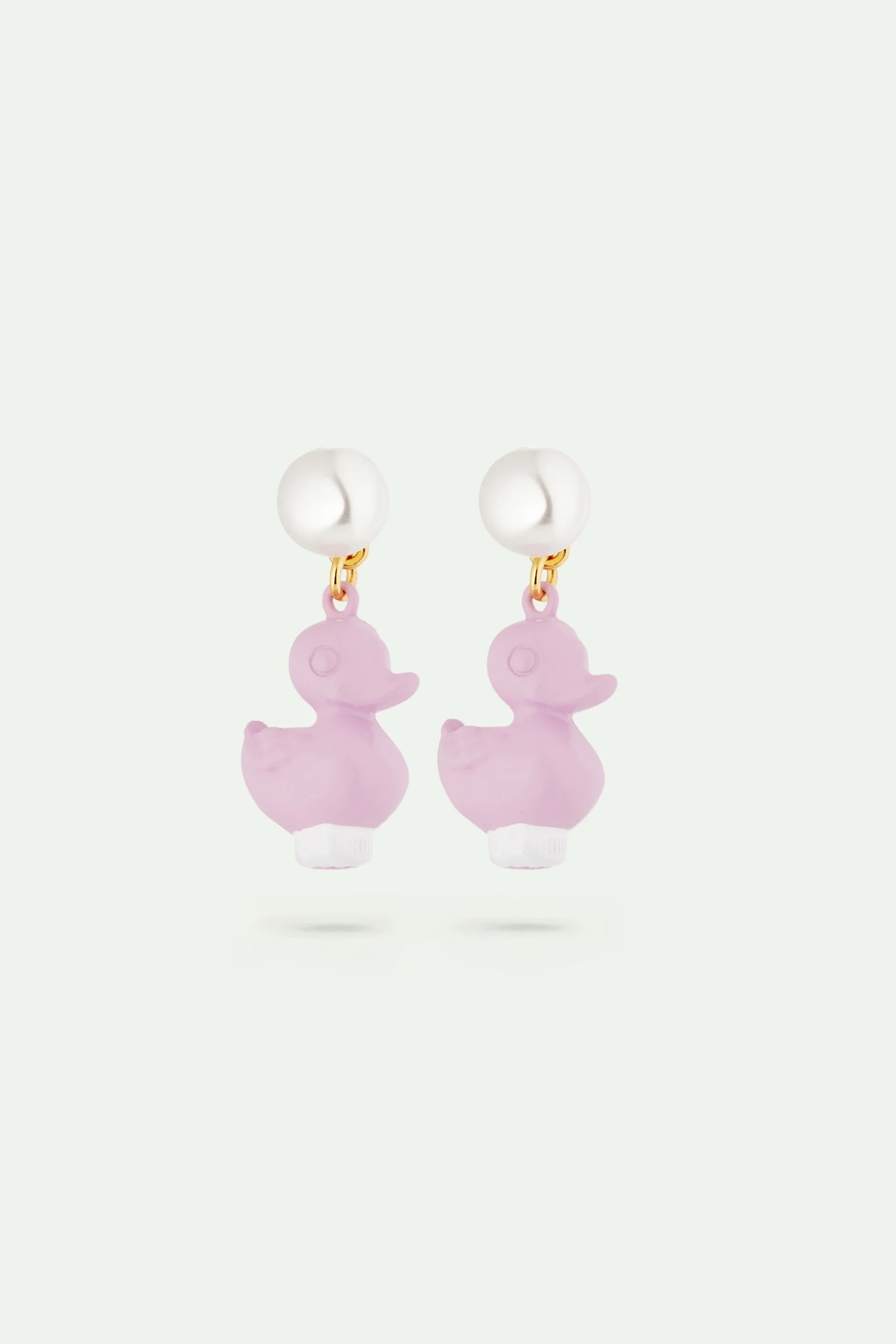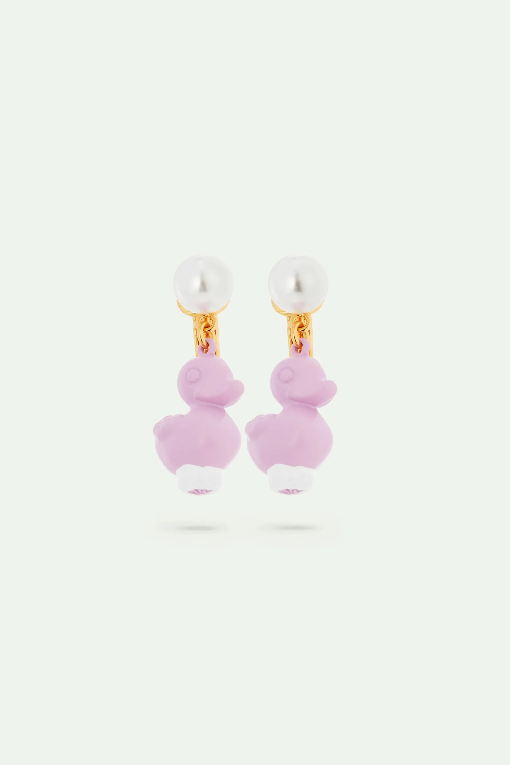 Boucles d’oreilles présentant un canard en plastique violet de fête foraine. Lors de ce qu’on pourrait imaginer être un après-midi d’automne au jardin des Tuileries, une petite fille, appelons-la Madeleine, se promène avec son teckel, appelons-le Octave. D’attraction en attraction, les bijoux en résine peinte à la main nous emmènent dans le monde merveilleux des manèges, pommes d’amour, barbes à papa, et autres petits canards.