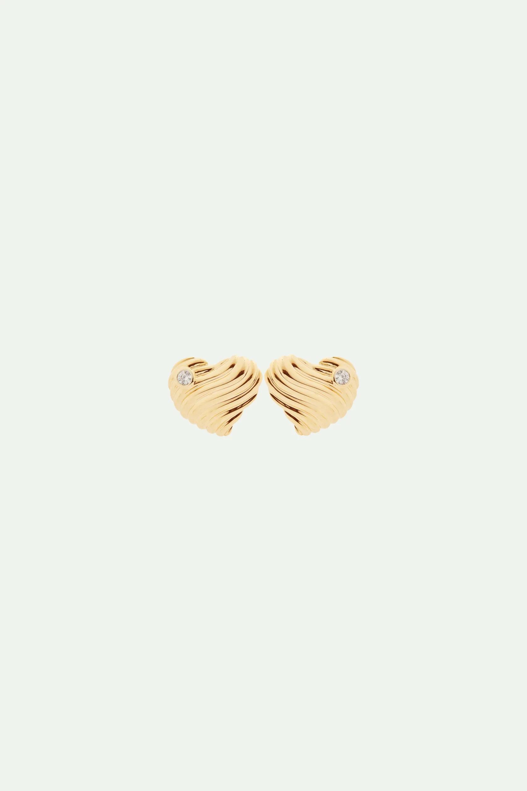 Laissez-vous séduire par ces magnifiques boucles d’oreilles coeur strié et oxyde de zirconium qui captureront votre cœur dès le premier regard. Chaque cœur des boucles d’oreilles est orné d’une texture cannelée qui évoque les douces vagues de l’océan. Cette paire de boucles d’oreilles présente un oxyde de zirconium incrusté sur le haut arrondi de chaque cœur. Ces éclats étincelants ajoutent une touche de brillance, symbolisant les moments étincelants et lumineux de l’amour partagé. Ils rappellent les rayons du soleil se reflétant sur l’océan, créant ainsi une atmosphère de magie et de romance. Boucles d’Oreilles Clip : Laiton doré à l’or fin, texture cannelée et oxyde de zirconium.