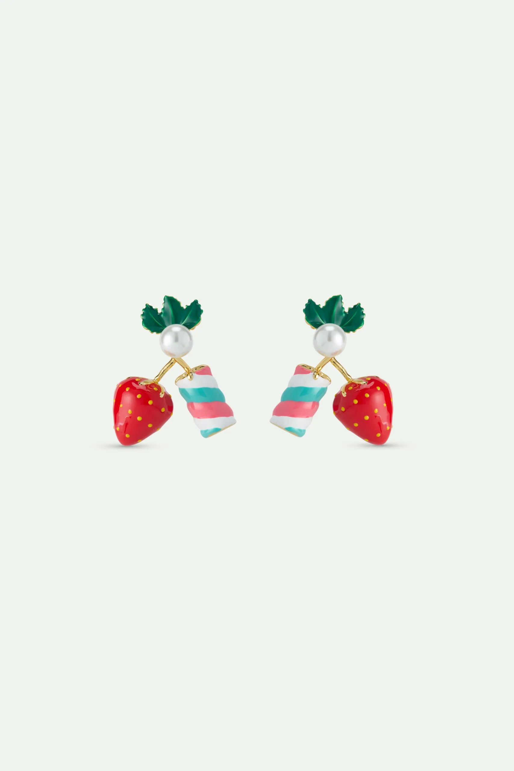 Boucles d’oreilles fraise et guimauve délicatement , perle fantaisie blanche. La collection Miam Miam Candy célèbre les douceurs enfantines avec des parures gourmandes et colorées.