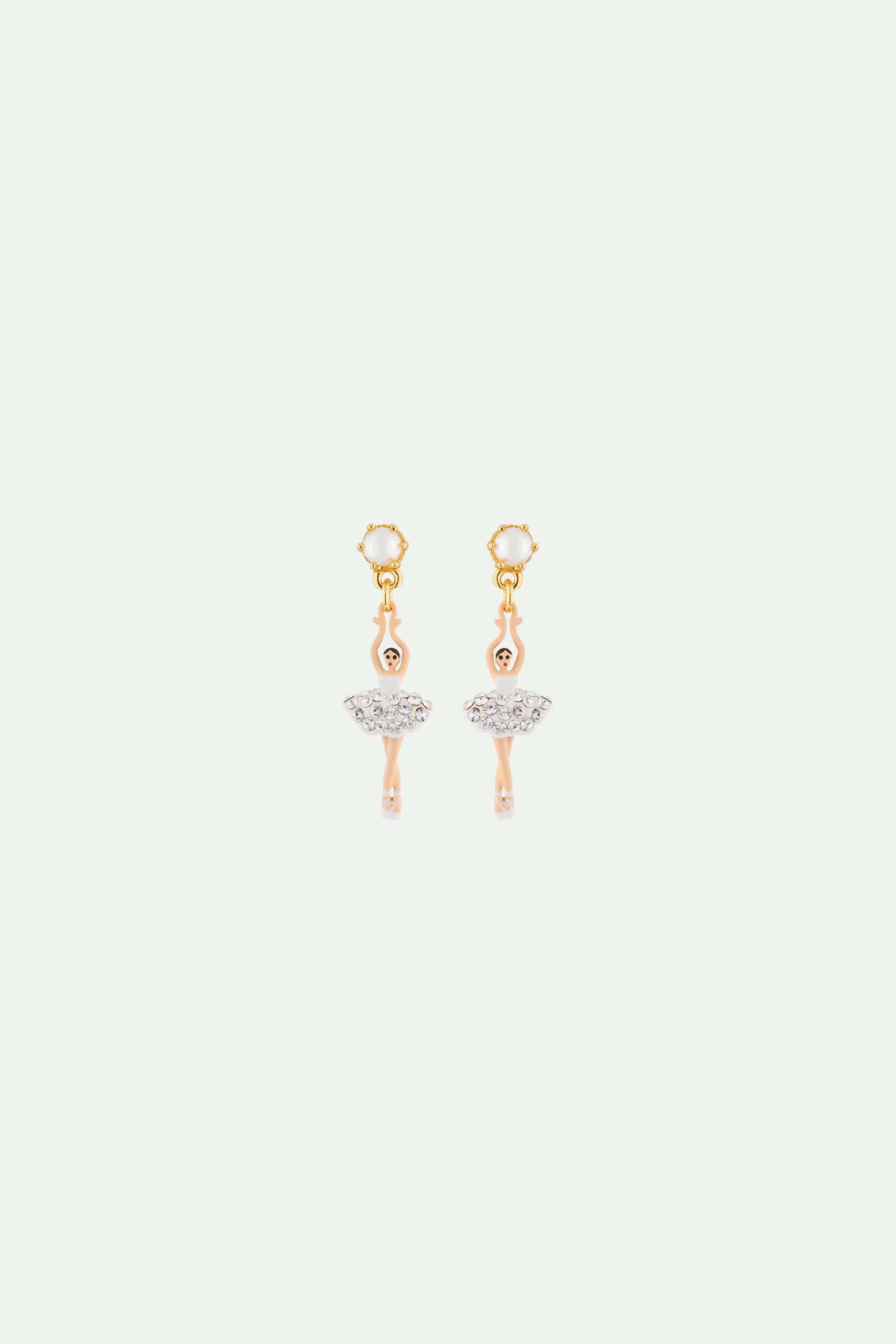 Le classique de la Collection Pas de Deux de La Maison Les Néréides déploie son colorama et revient avec la couleur blanche symbole de pureté. Les boucles d’oreilles mini ballerine avec strass sont ornées d’une perle fantaisie ton sur ton. Les boucles d’oreilles sont en laiton doré à l’or fin 18 carats et sont .