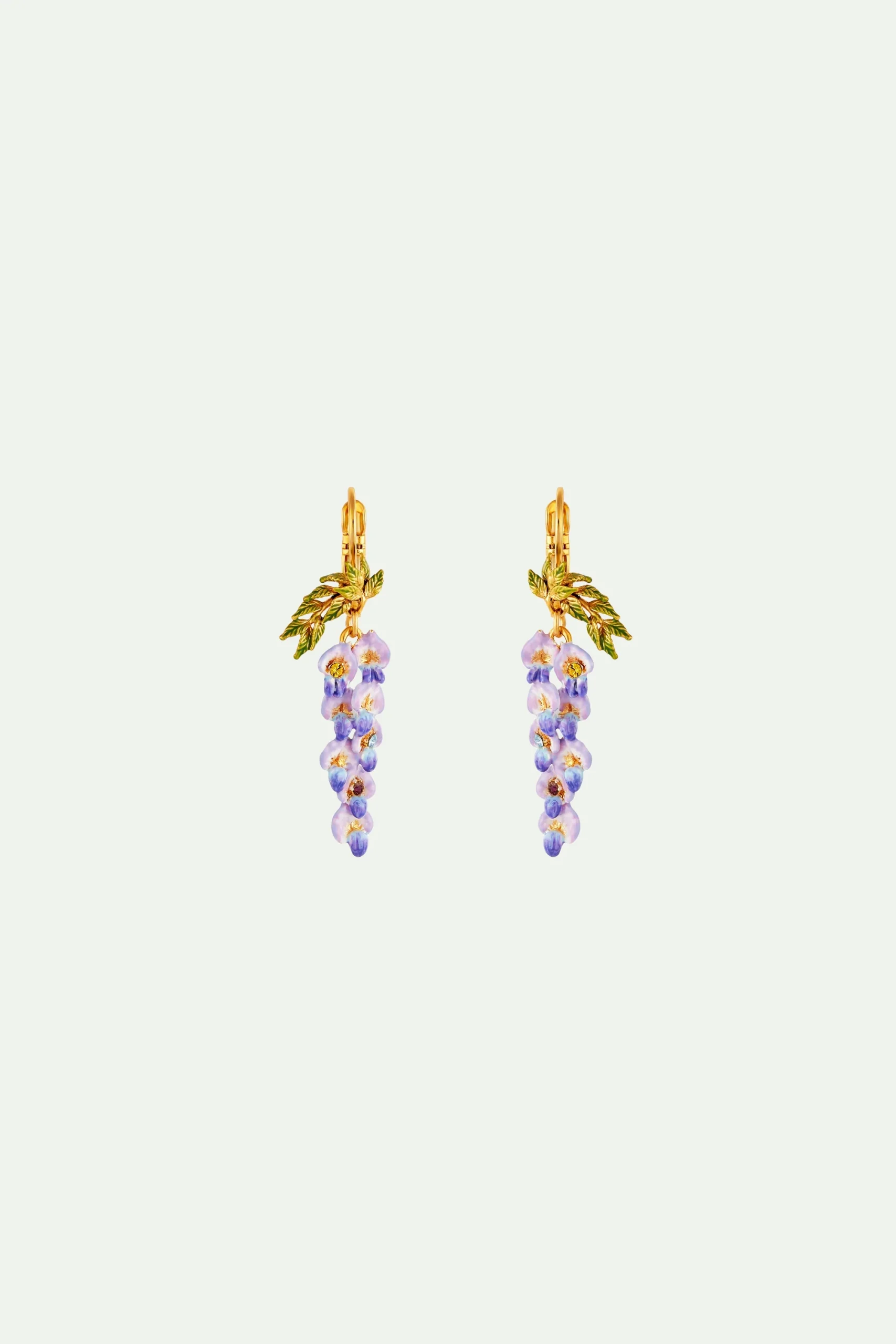 Boucles d’oreilles pendantes dormeuses fleur de glycine et feuillage