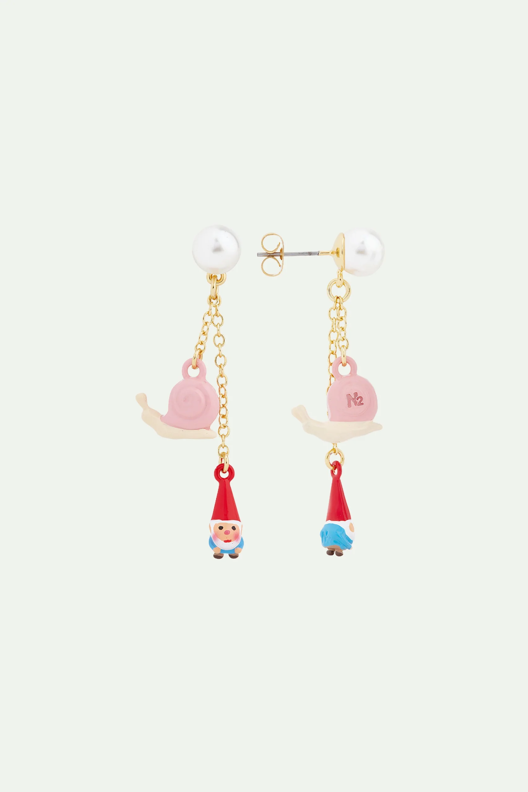 De part et d’autre de ces boucles d’oreilles, deux adorables nains de jardin sont suspendus au bout de fines chaînes dorées à l’or fin. Accompagnés d’escargots à la coquille rose, ces nains sont habillés d’un chapeau rouge et d’une chemise bleue. Craquez pour leurs ravissantes petites joues roses en habillant vos oreilles de ce bijou haute fantaisie. Boucles d’Oreilles Clip : laiton doré à l’or fin, , perle fantaisie et résine.