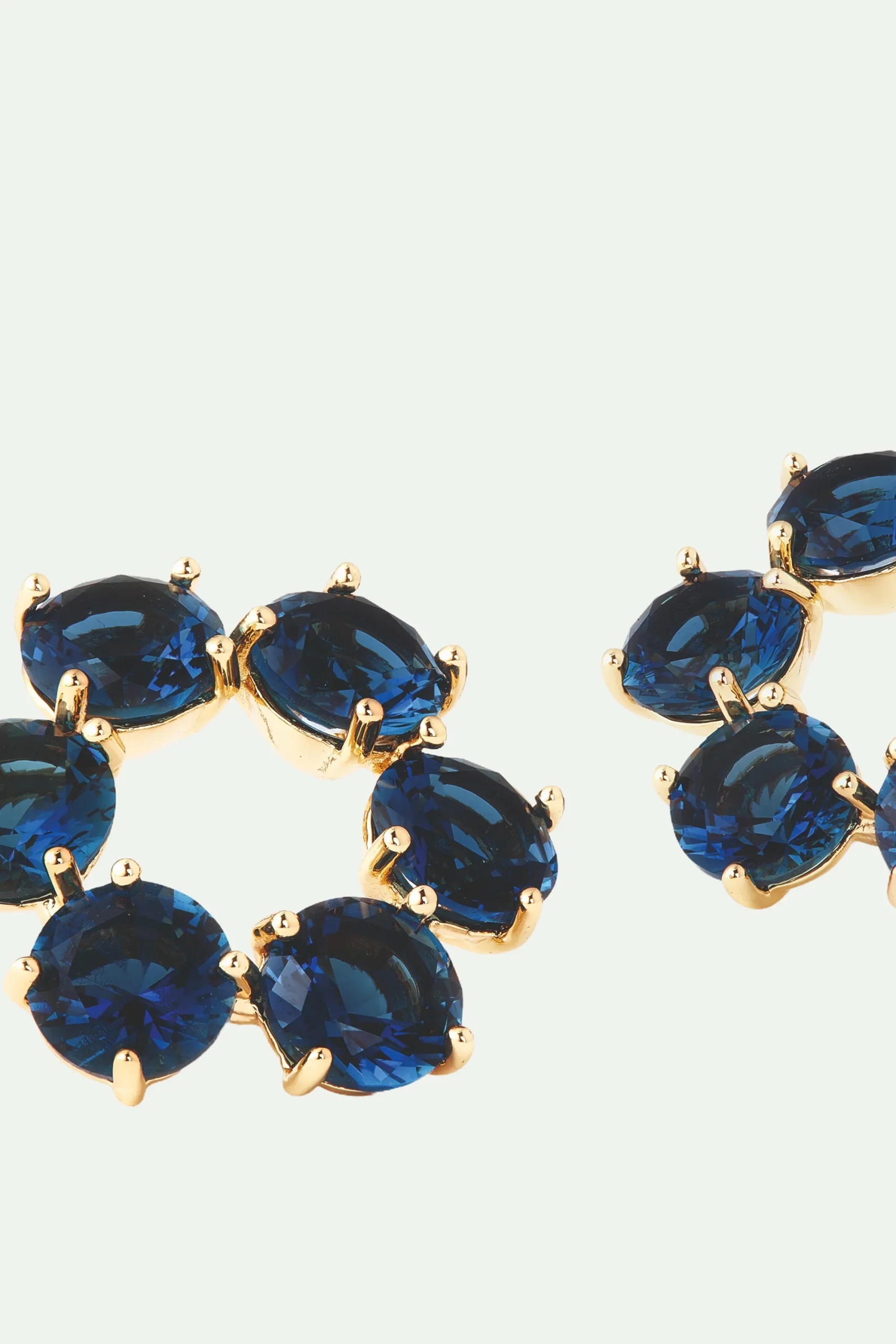 Laissez-vous séduire par la collection de bijoux La Diamantine Bleu Océan à la teinte saphir et aux facettes translucides, notamment avec cette paire de boucles d’oreilles tiges en forme de cercle, composée de six petites pierres serties de griffes dorées. Les différents modèles de boucles d’oreilles proposés dans cette parure conviendront aussi bien aux visages ronds qu’ovales pour un rendu harmonieux. Vous pouvez retrouver les différentes nuances de La Diamantine sur notre site en ligne et en boutique pour compléter votre collection.Boucles d’Oreilles Tiges : Laiton doré à l’or fin peint à la main et verre facetté.