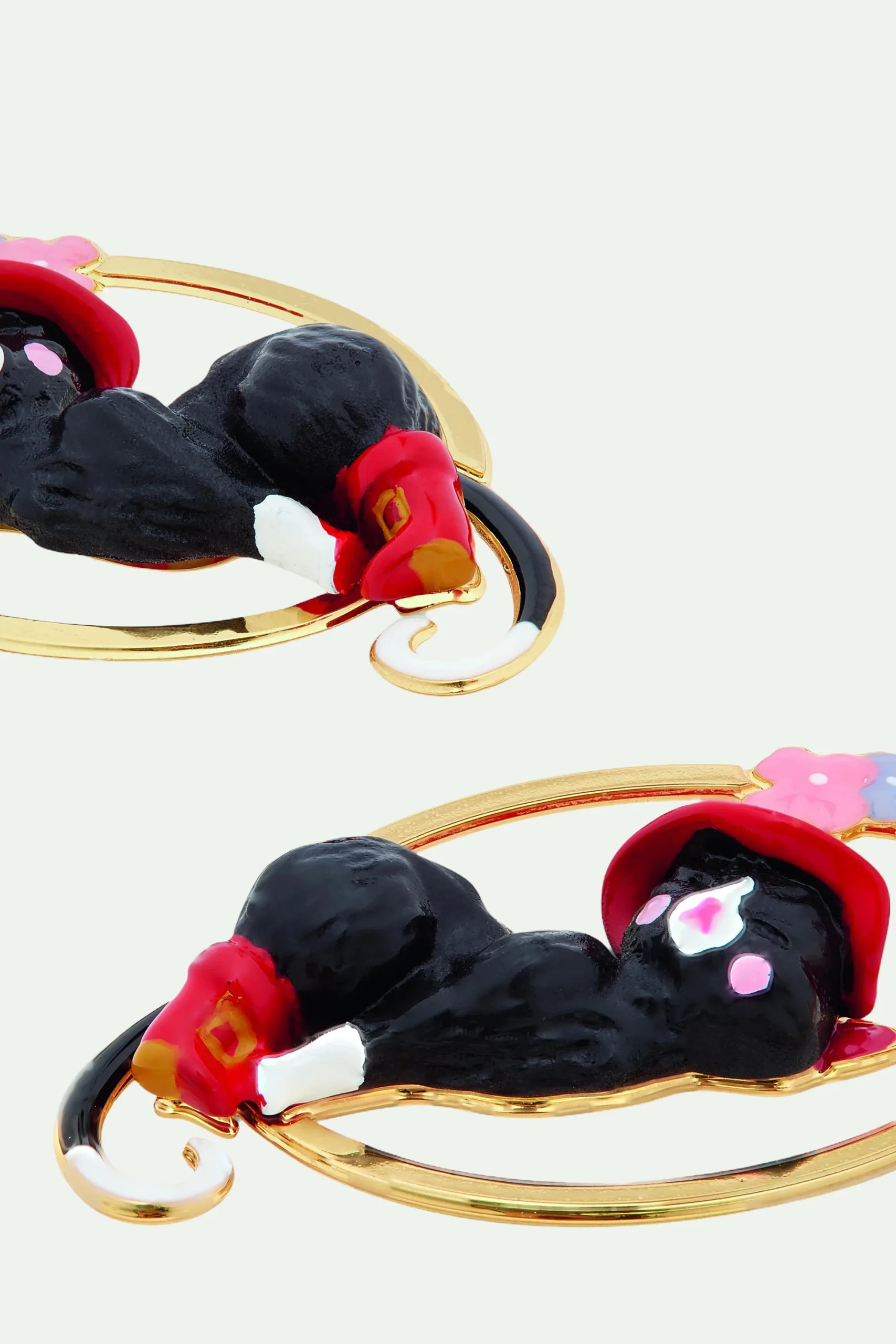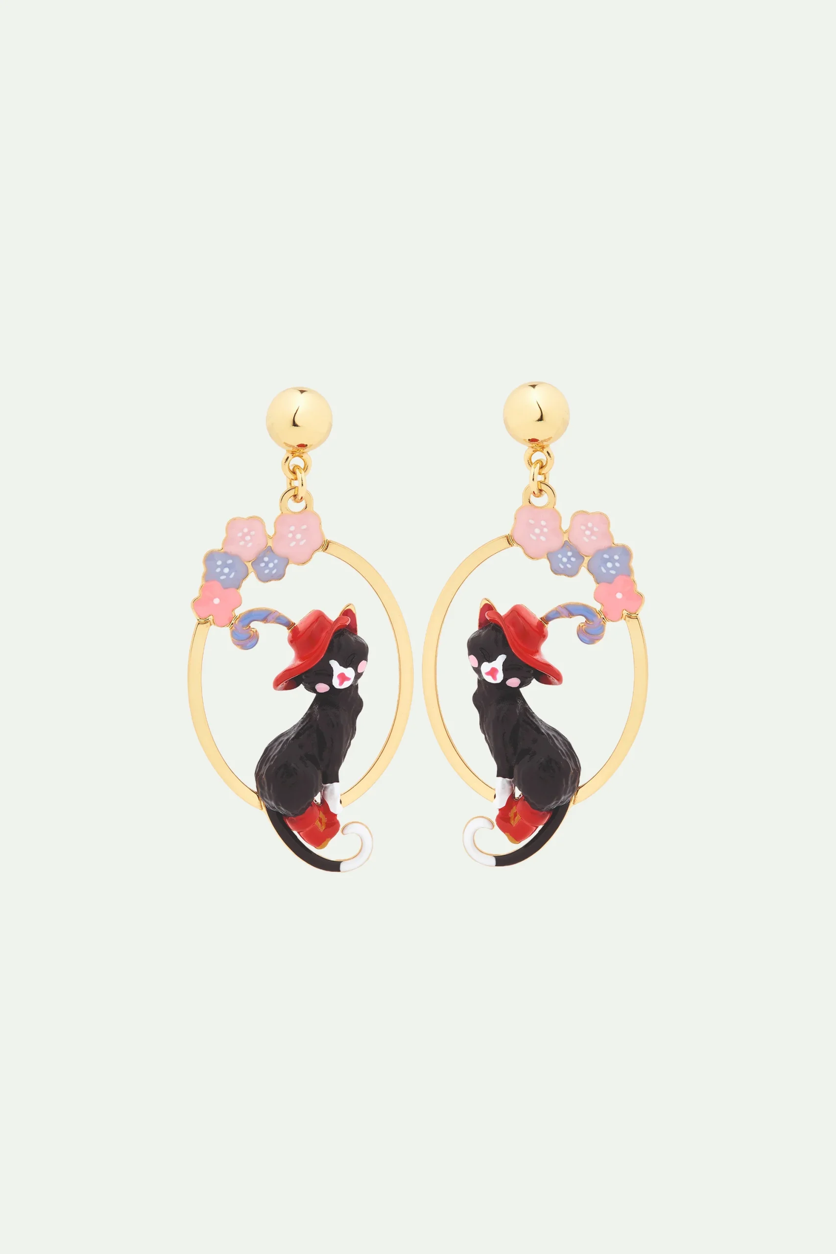 Au cœur de cette estampe ovale dorée à l’or fin trône majestueusement le Chat botté, arborant sa mythique paire de bottes et un somptueux chapeau rouge orné d’une plume. À ses côtés, de superbes fleurs aux pétales teintés de bleu et de rose pastel viennent apporter couleur à ce bijou de créateur. Laissez votre imagination s’épanouir en associant ces boucles d’oreilles au collier pendentif chat charmant et fleur, pour créer un style malicieux qui ne manquera pas de faire sensation. Boucles d’Oreilles Tiges : Laiton doré à l’or fin, résine peinte à la main et perle fantaisie.