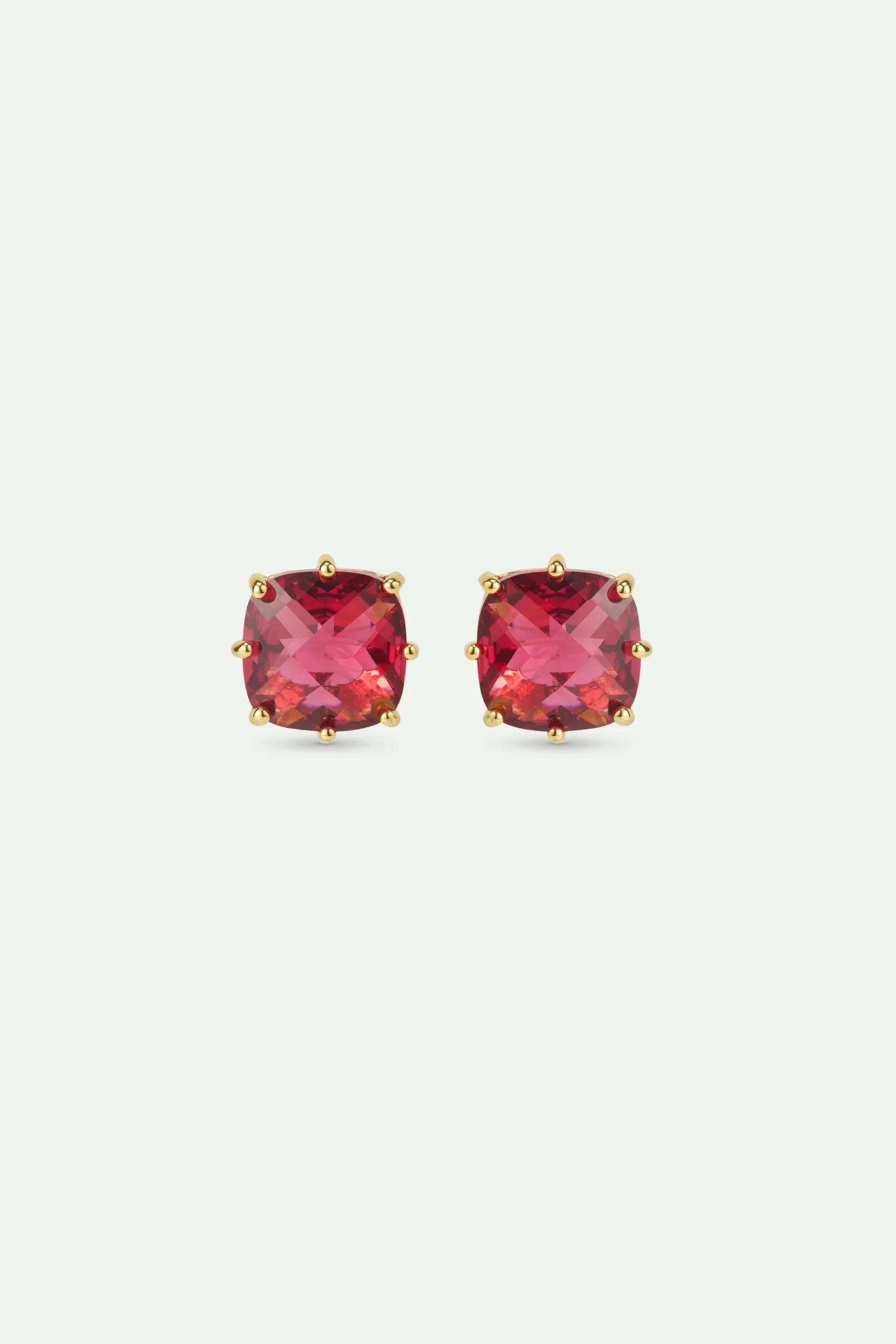 Boucles d’oreilles tiges pierre carrée, taillée en verre facettée Rosa Centifolia.