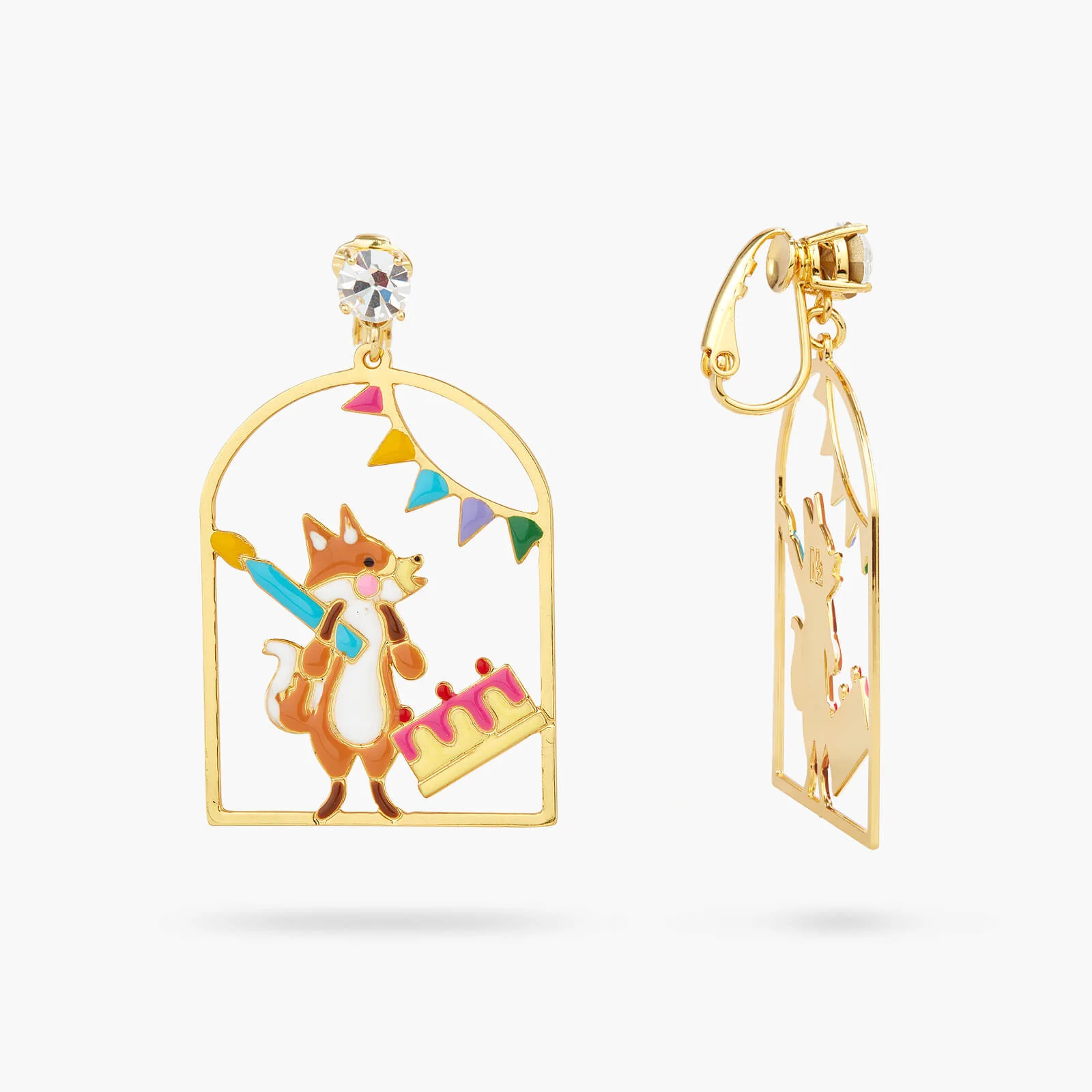 Accessoirisez toutes vos tenues avec cette paire de boucles d’oreilles tiges composée du mignon renard avec le gâteau d’anniversaire puis d’une bougie et de guirlandes colorées. N2 by Les Néréides nous rappelle beaucoup d’émotions et de souvenirs d’enfance, cette collection de bijoux fantaisie sur un goûter d’anniversaire en est le parfait exemple.