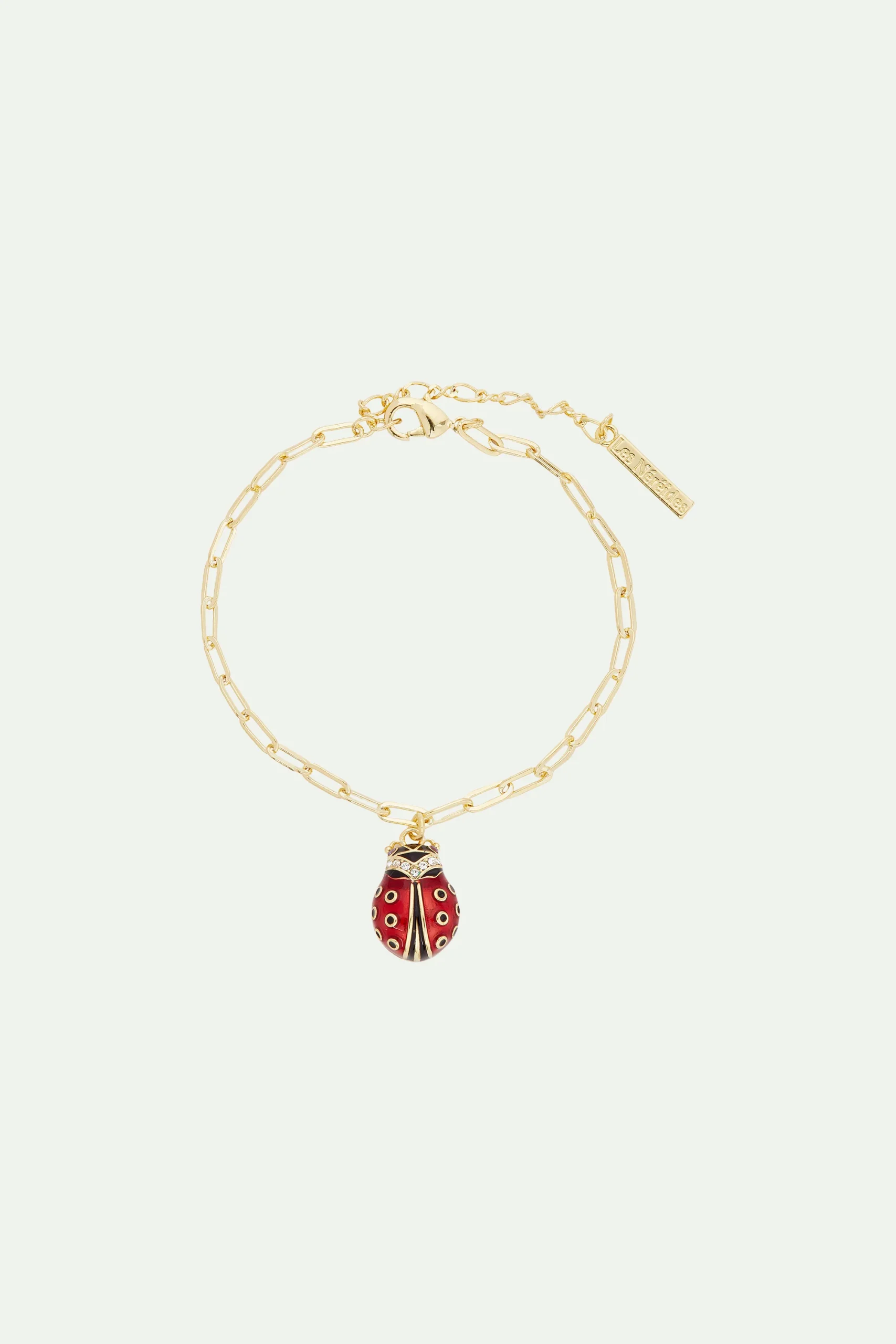 Bracelet chaîne rectangle coccinelle et cristaux facettés