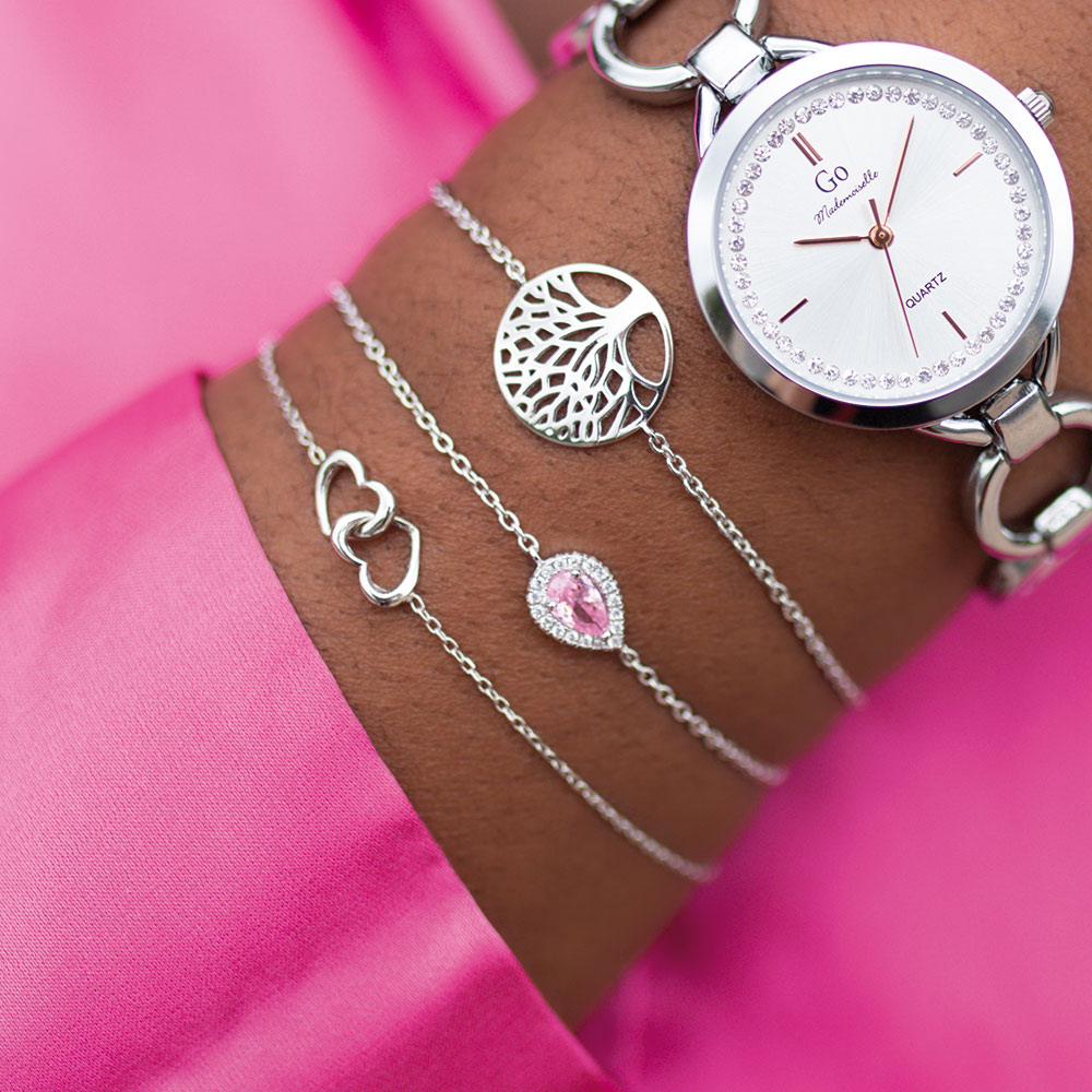 Ce bracelet 601570 unique et éclatant au mariage harmonieux entre l’argent et le Blanc & rose sera un vrai coup de cœur ! Il est un cadeau idéal à se faire à soi-même ou à offrir pour célébrer l’instant présent. Vous pourrez l’assortir au gré de vos envies à nos colliers et boucles d’oreilles .