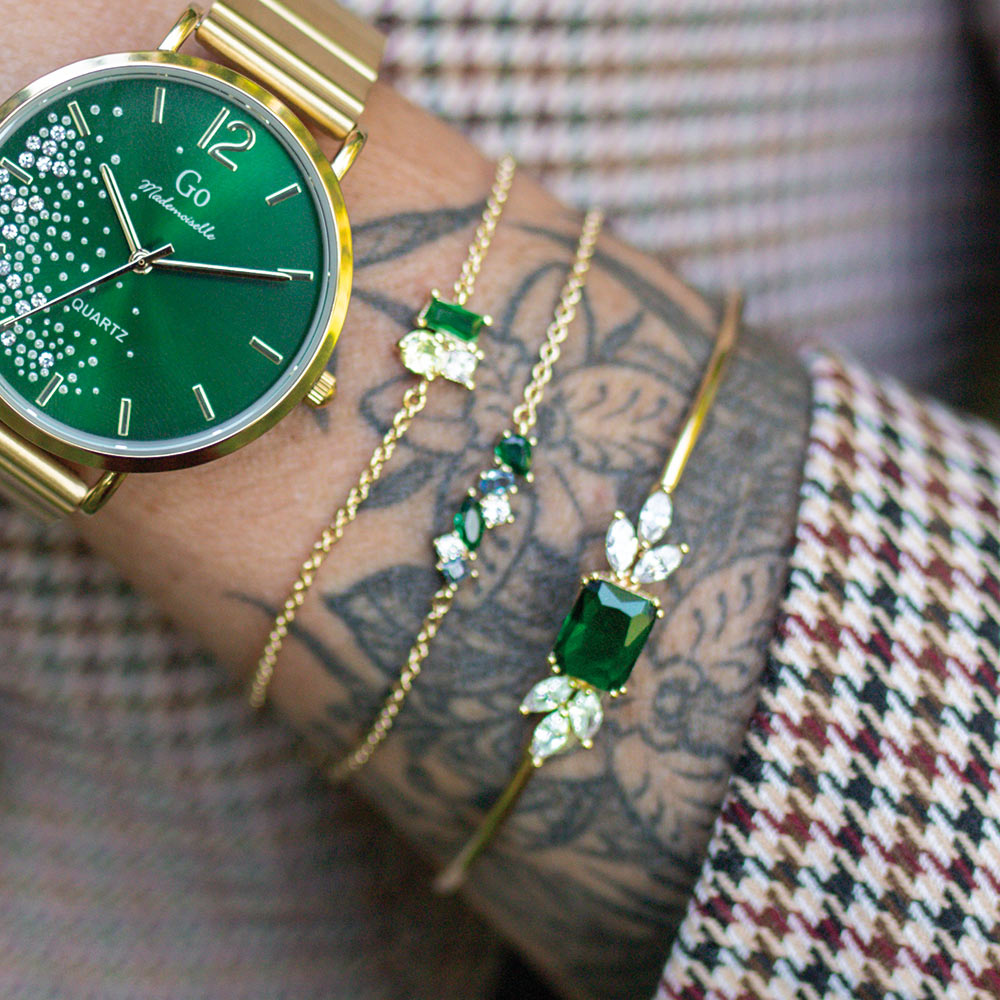 Ce bracelet 605605 unique et éclatant au mariage harmonieux entre le plaqué or et le Vert, bleu, blanc sera un vrai coup de cœur ! Il est un cadeau idéal à se faire à soi-même ou à offrir pour célébrer l’instant présent. Vous pourrez l’assortir à votre guise à nos colliers et boucles d’oreilles .