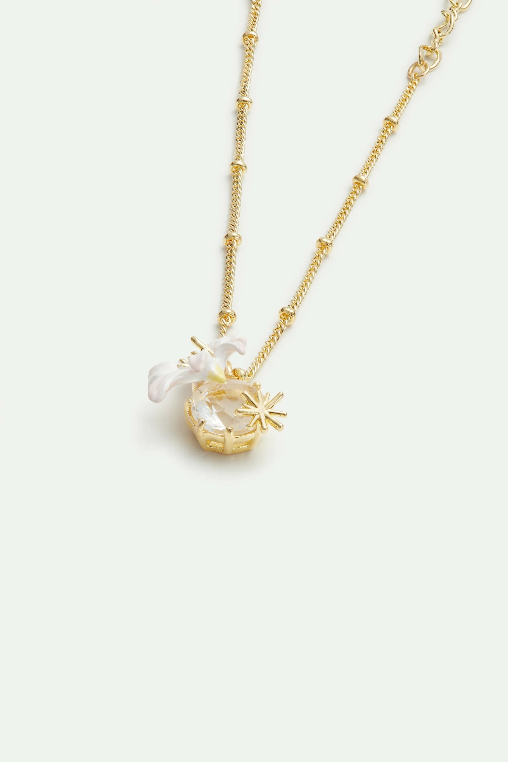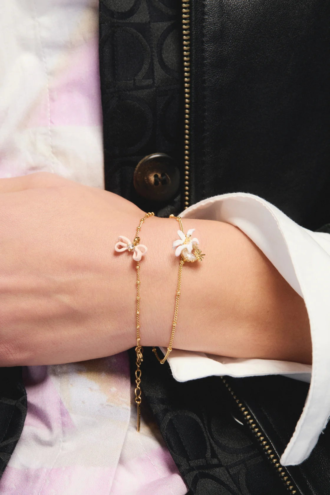 Bracelet fin pendentif Fleur de Lys et pierre facettée, chaine perlée en laiton doré à l’or fin. Pour célébrer les 150 ans du Palais Garnier, la Maison les Néréides a conçu des parures imprégnées de l’esprit de l’Opéra.