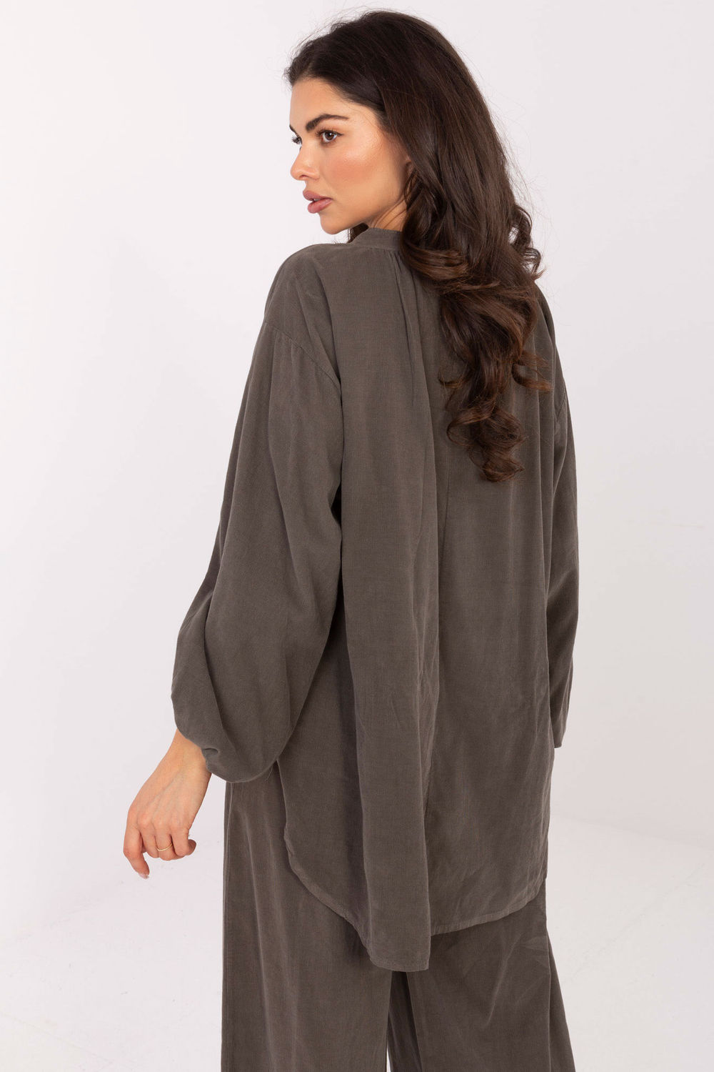 Chemise élégante décontractée, parfaite pour tous les jours. Fabriqué en polyester léger et agréable au toucher, il assure un confort toute la journée. Le modèle a des manches longues bouffantes qui ajoutent une légèreté subtile et un caractère féminin. Le décolleté en forme de cœur avec un col délicat met joliment en valeur le cou, et la fermeture à boutons jusqu’à la moitié de la longueur facilite l’enfilage et donne une finition élégante à l’ensemble. La chemise unie lisse de longueur standard se marie parfaitement avec des jeans ou des jupes, créant un look quotidien et à la mode.