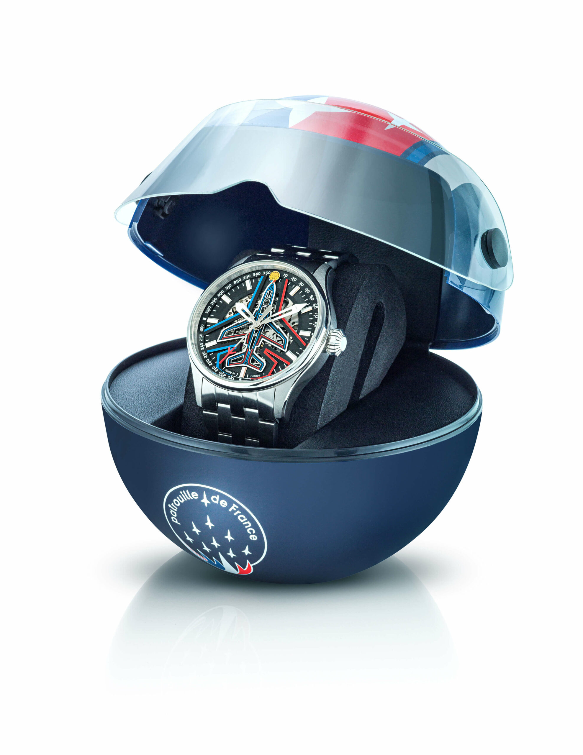 À la Patrouille de France, il arbore les couleurs tricolores, symbole des Ambassadeurs de l’armée de l’Air et de l’Espace.