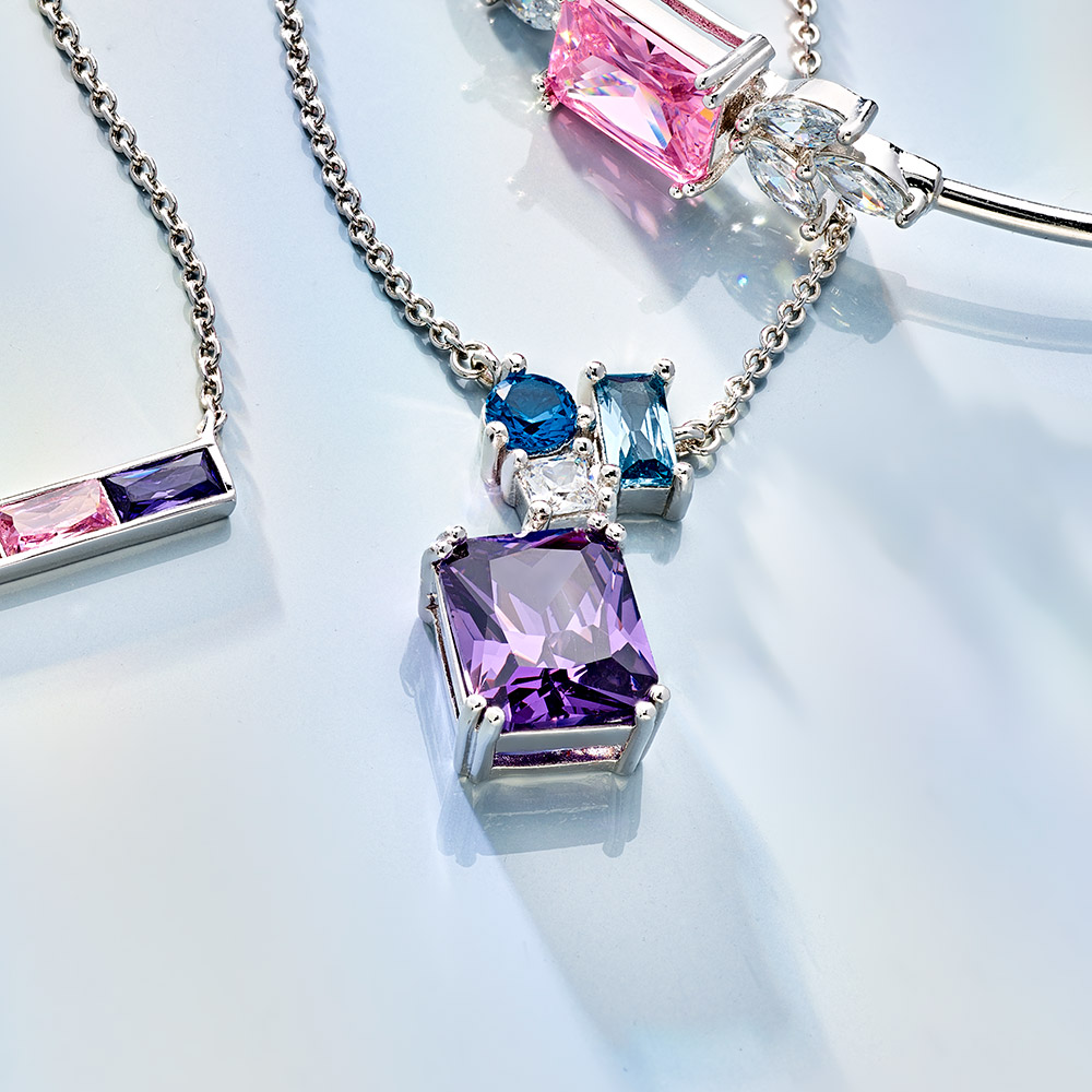 Cette ravissante création 600115 aux couleurs vives de notre collection de bijoux GO Mademoiselle La Vie En Go ne manquera pas de vous faire tourner la tête ! Elle est une invitation à une union exquise entre l’argent et les pierres Violet, bleu, blanc.