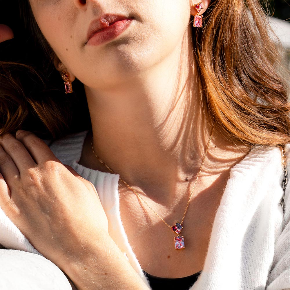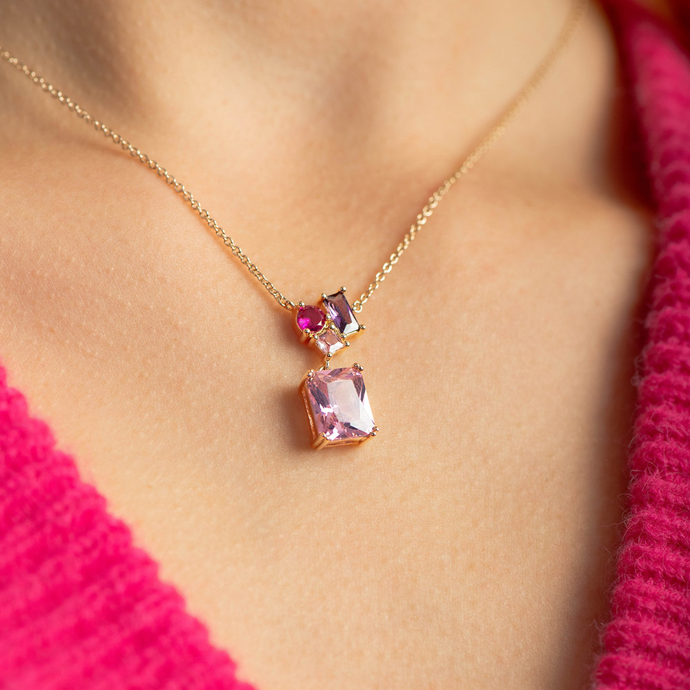 Cette ravissante création 604119 aux couleurs vives de notre collection de bijoux GO Mademoiselle La Vie En Go ne manquera pas de vous faire tourner la tête ! Elle est l’union exquise entre le plaqué or et les pierres rose, violet, fuschia, blanc.