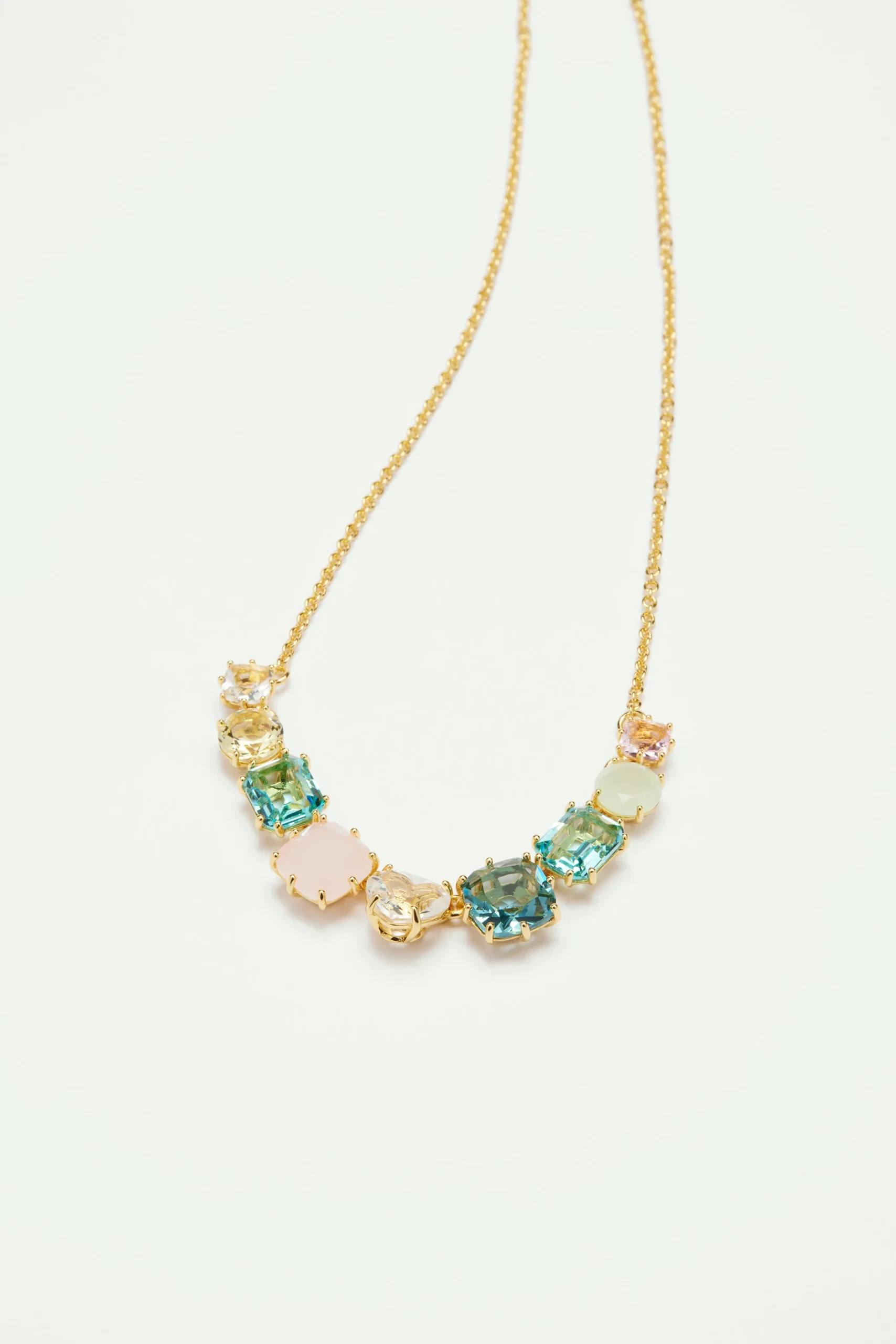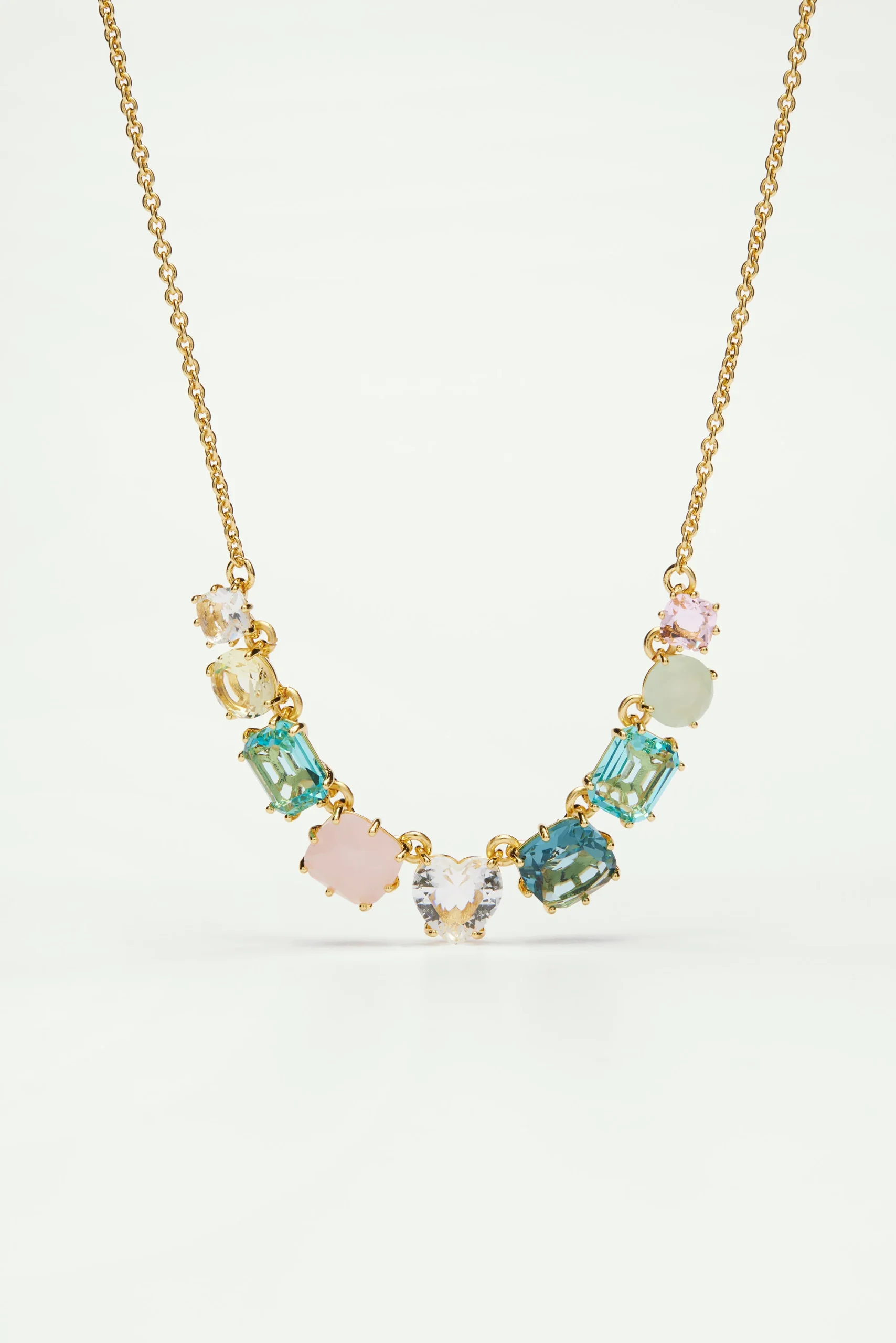 Imaginez-vous sur la Côte d’Azur avec ce collier fin 9 pierres La Diamantine Acqua Azzura. Ce bijou original pour femme vous offre une véritable explosion de couleurs : quartz rose, aquamarine, cristal de roche, tantôt transparent, tantôt translucide. Les pierres de tailles rondes et fantaisie en verre facetté apporteront une touche fantaisie à votre style. Découvrez sans plus attendre notre collection La Diamantine, une ligne emblématique de la Maison Les Néréides déclinée en plusieurs couleurs et formes.