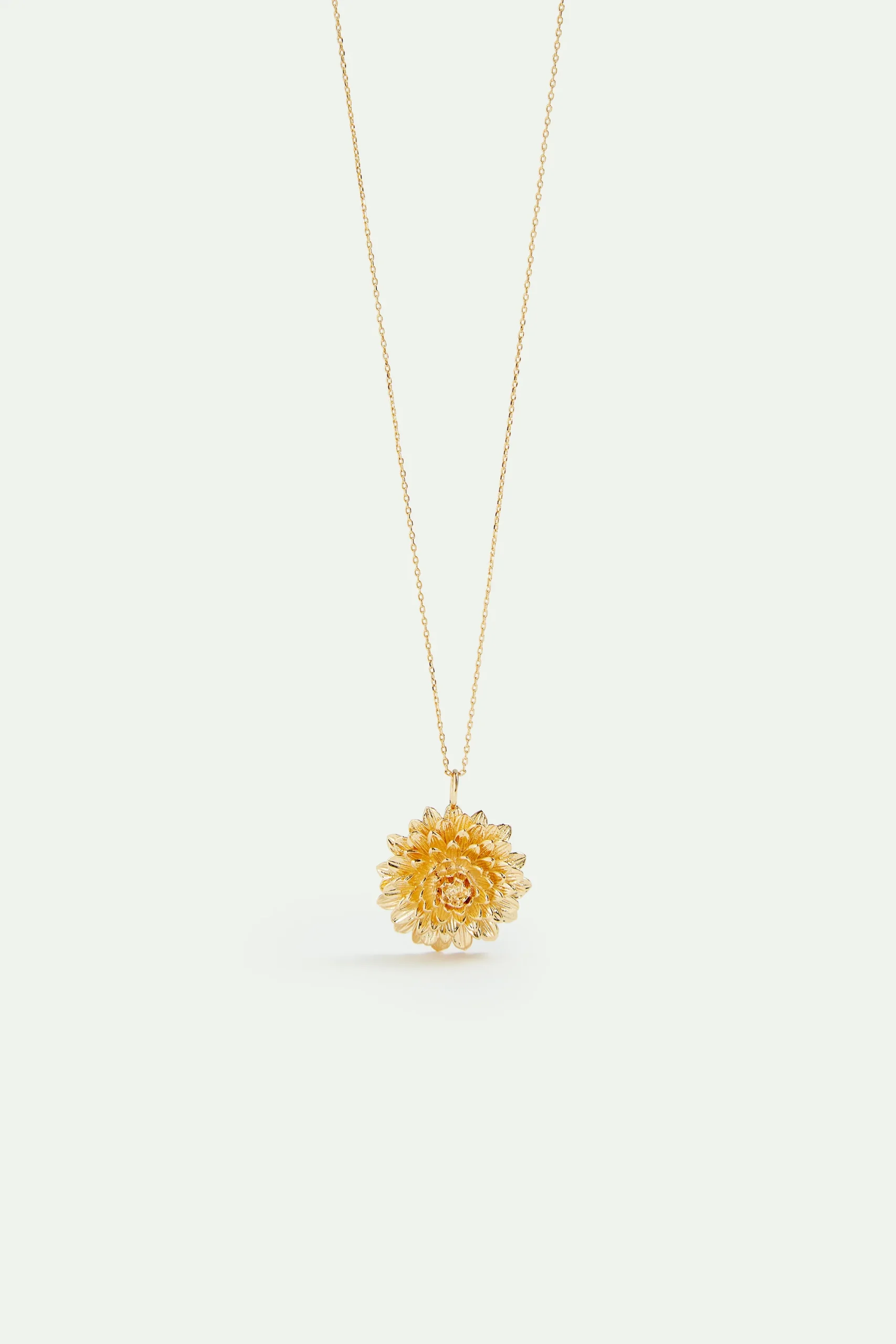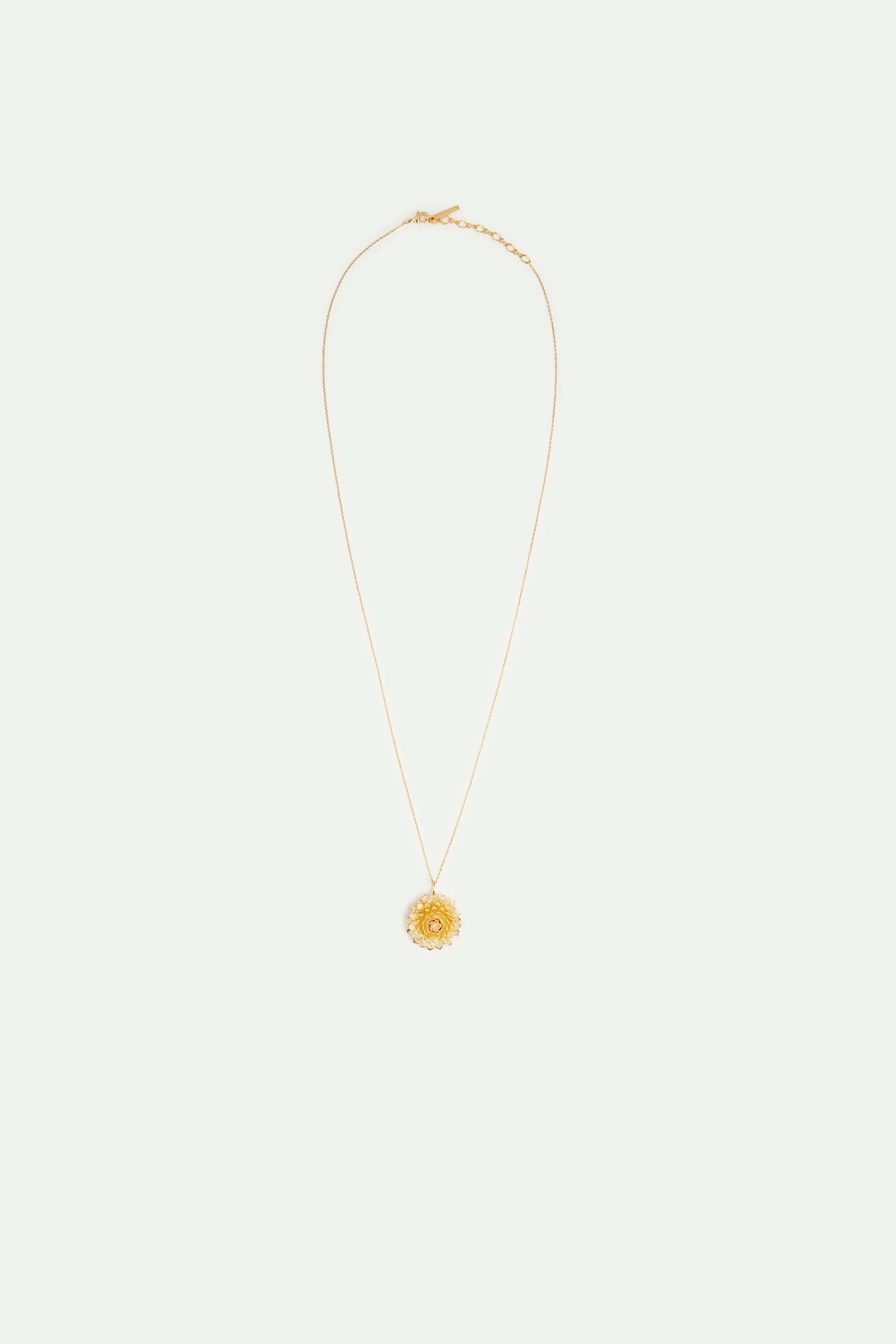 Collier fin, pendentif grande fleur de pissenlit en laiton doré à l’or fin.