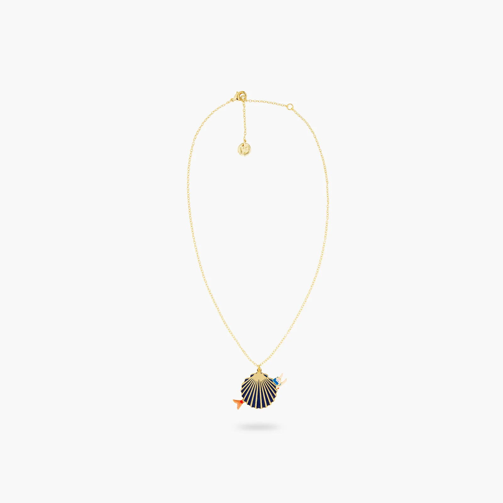 Redécouvrez le conte La Petite Sirène interprété par N2 By Les Néréides à travers ce collier pendentif coquillage et sirène. Il se compose d’un coquillage bleu et doré, traversé par une sirène aux cheveux bleu et à la queue de poisson couleur corail. Vous pouvez associer ce collier avec les boucles d’oreilles asymétriques coquillage et sirène, déclinées en clips et en tiges. Collier Pendentif : Laiton doré à l’or fin et peint à la main