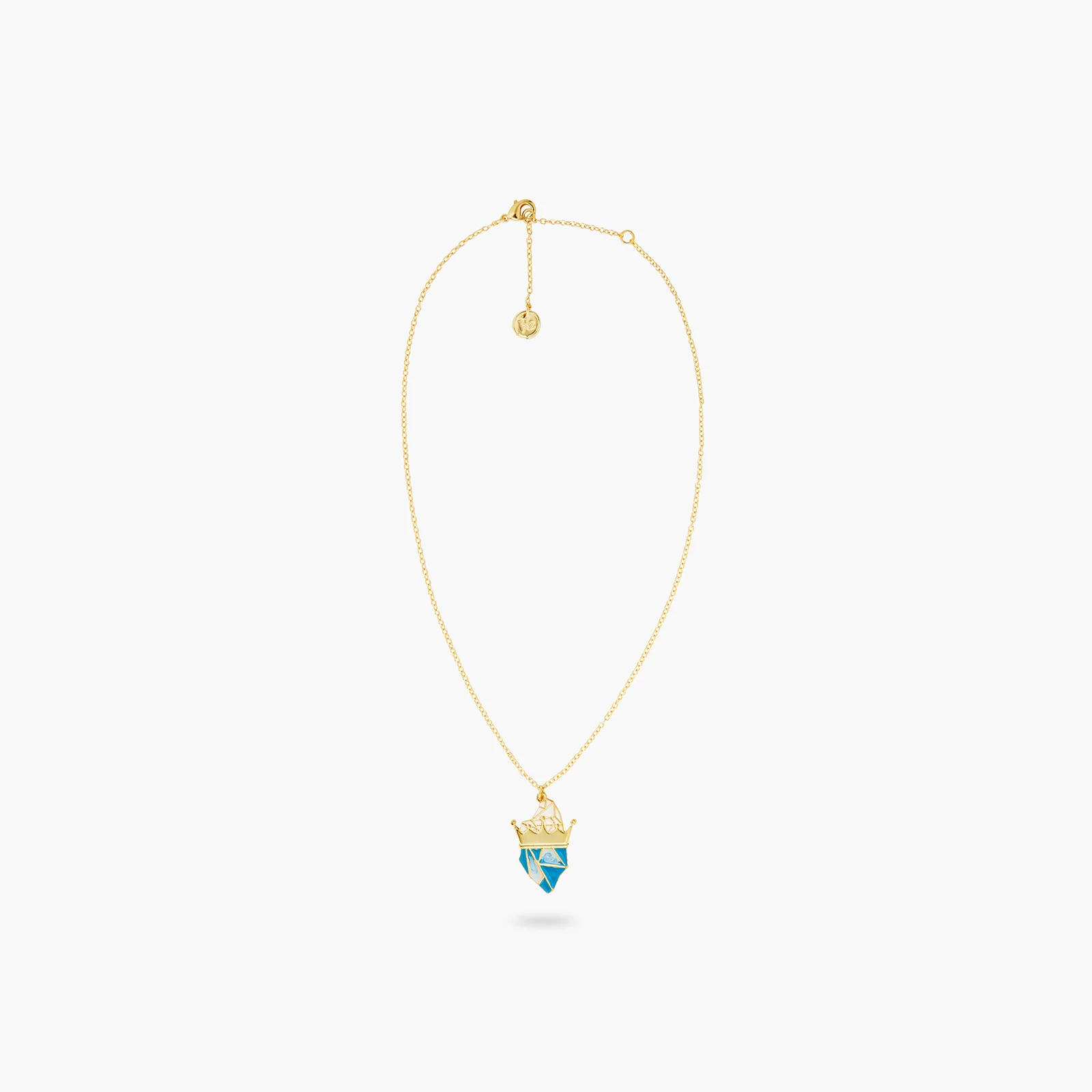 La collection Qui et Qui ? vous ramène en enfance avec le conte La Reine des Neiges. N2 by Les Néréides revisite ce grand classique d’Anderson, qui a aussi été réinterprété et adapté en film d’animation. Ce collier pendentif Reine des neiges se compose d’un bloc de glace bleu et blanc, entouré d’une couronne dorée. Collier Pendentif : Laiton doré à l’or fin et peint à la main