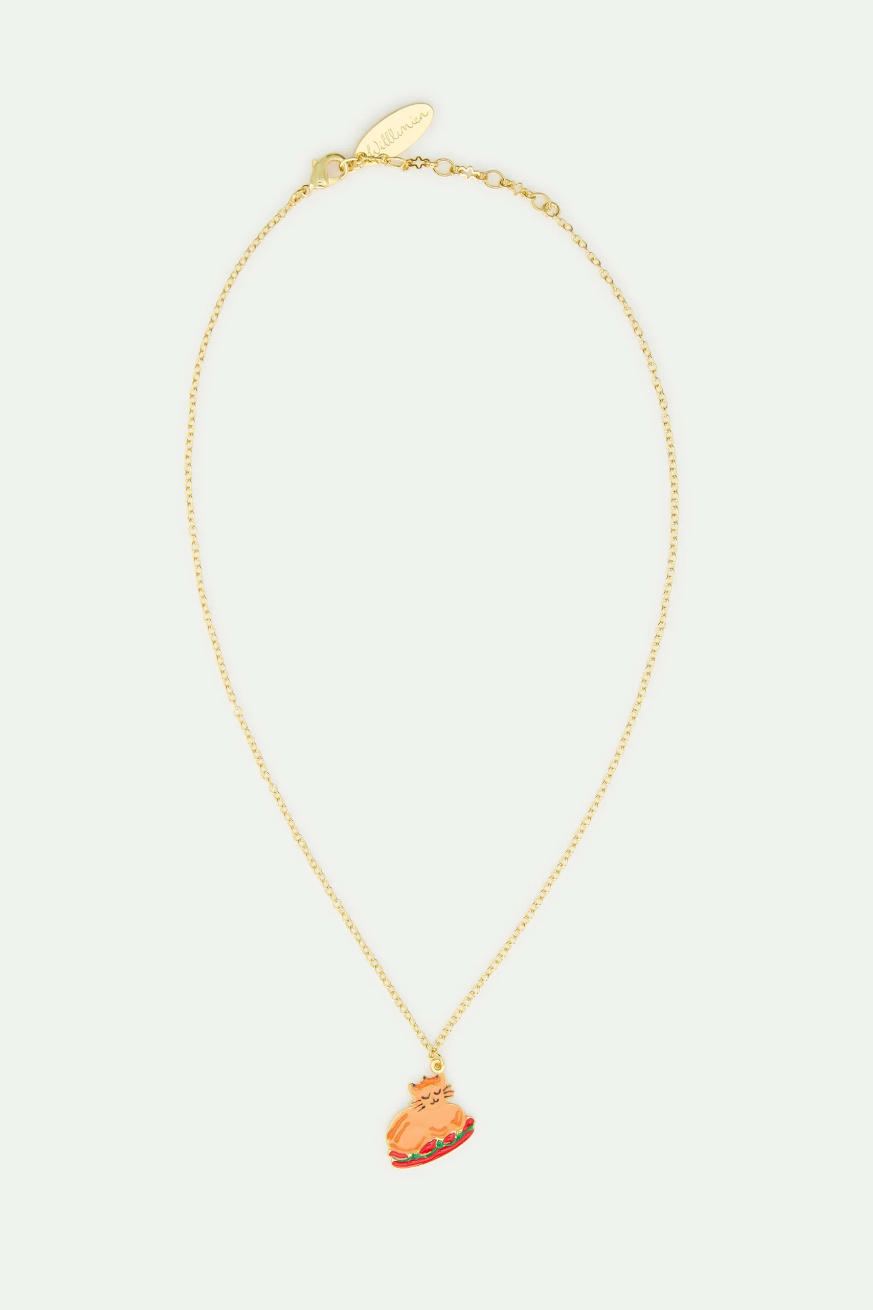 Collier pendentif repas de noël et couronne doré peints à la main. Laiton doré à l’or fin.