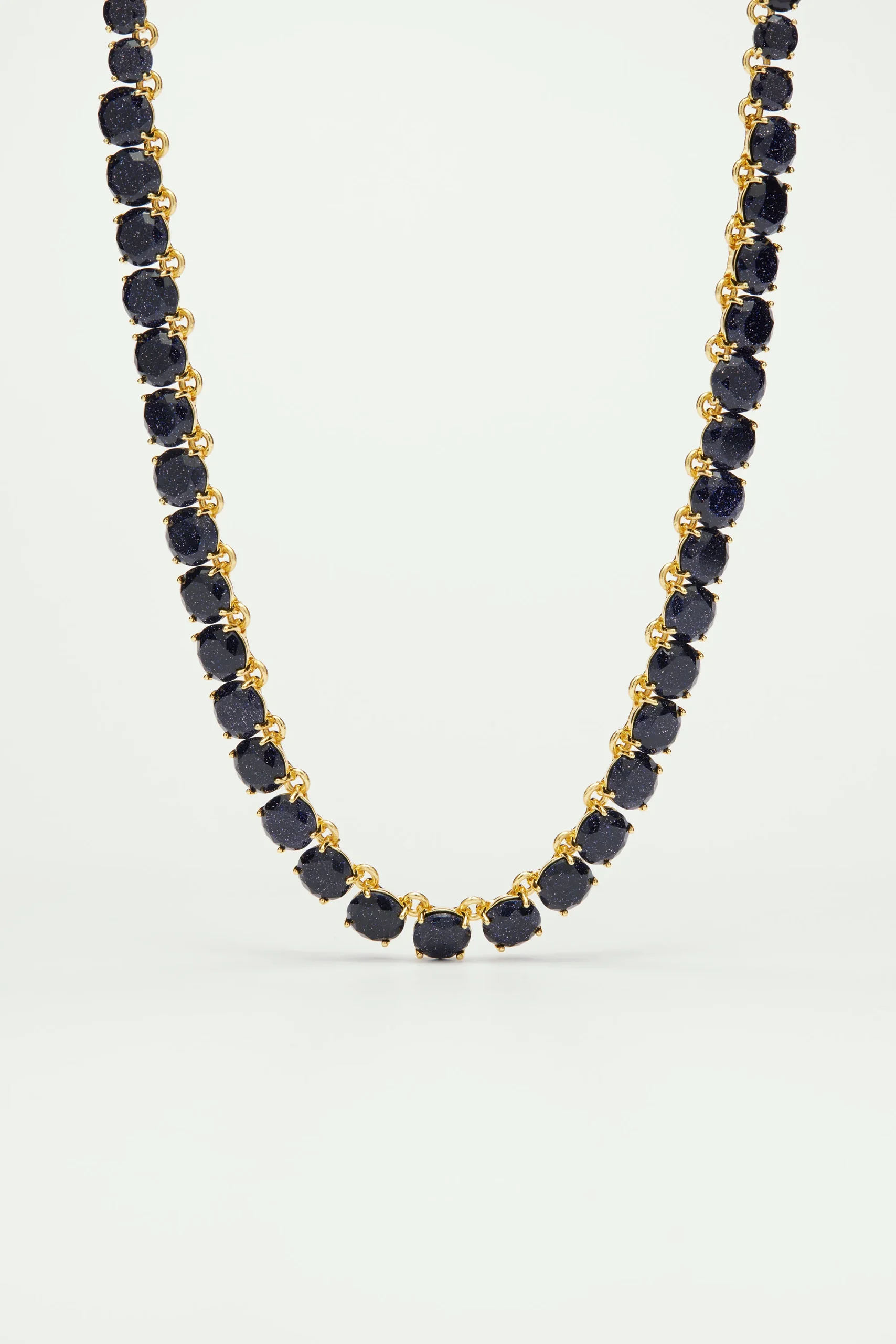 Certainement le bijou le plus raffiné au sein des lignes emblématiques de La Diamantine, optez pour ce très élégant ras de cou aux pierres rondes bleu nuit pailleté, montées sur un serti doré à l’or fin. Une création unique en bijouterie haute fantaisie signée La Maison Les Néréides. Colliers Ras de Cou : laiton doré à l’or fin, pierre de verre taillé, colorama bleut nuit pailleté.