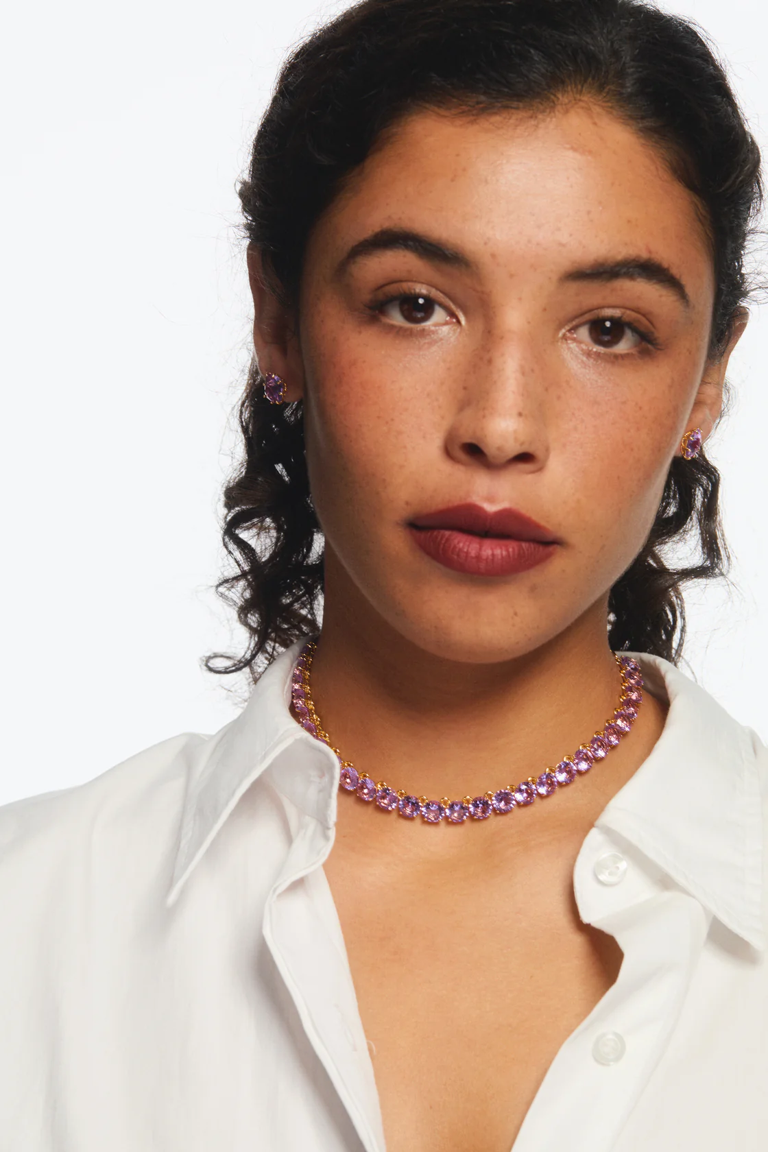 Collier ras de cou pierres rondes en verre facetté violet. L’élégante Diamantine se transpose cette année en Provence. La collection revêt le raffinement bucolique d’une prairie où marguerites et lavandes aromatiques ondulent dans le vent. Une parure féminine composée de pièces aux nuances douces qui nous renvoient à la quiétude d’un rayon de soleil rasant les tonnelles.