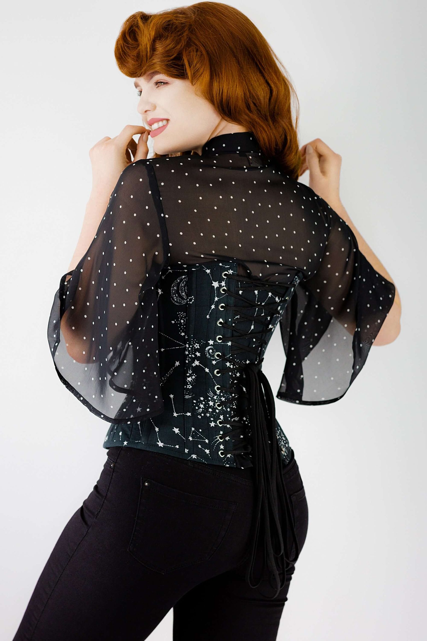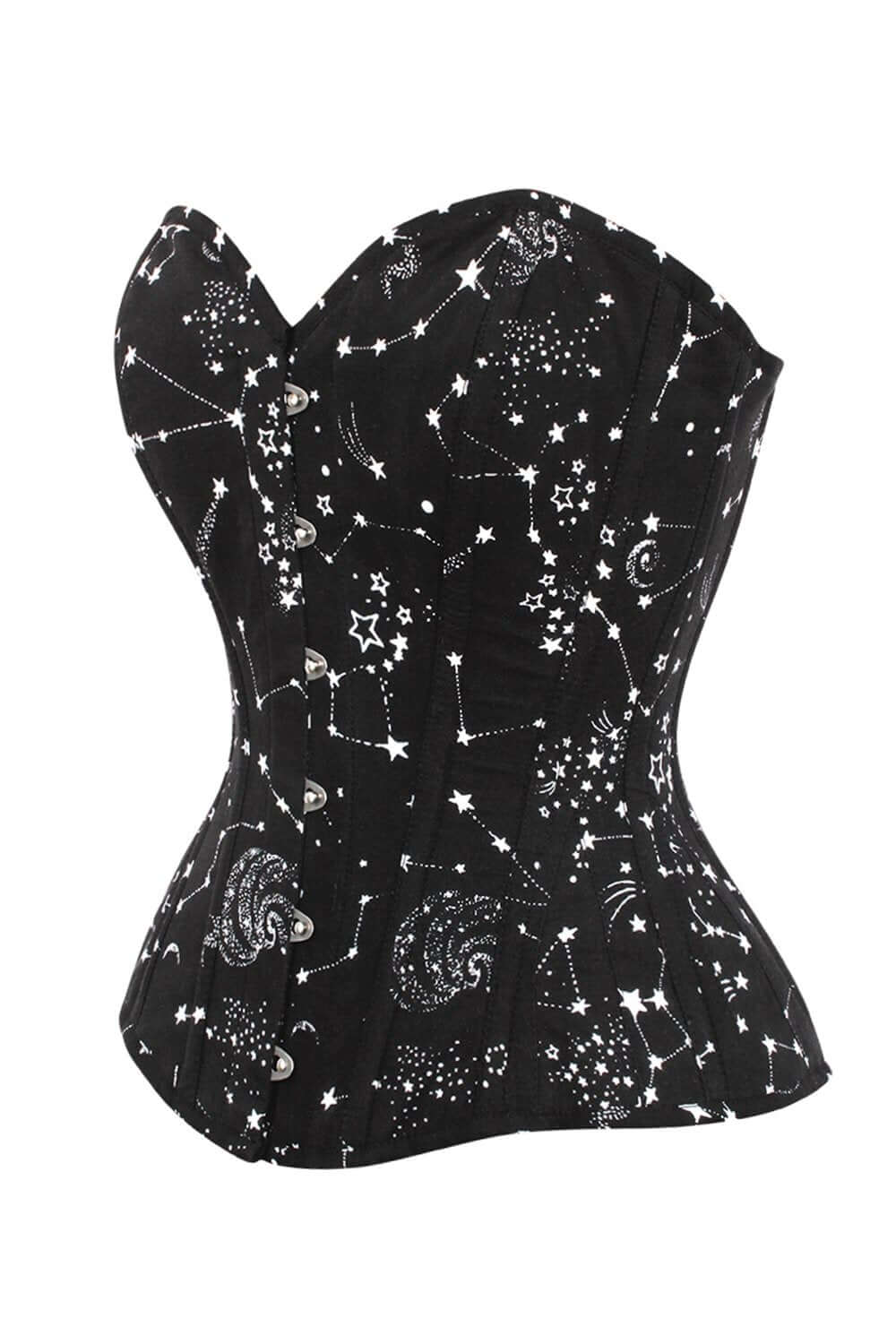 Notre corset bustier en coton vient dans notre imprimé astronomique noir et blanc le plus vendu. Offrant un soutien intégral buste et une taille amincie jusqu’à quatre pouces, cela peut être porté comme sous-vêtements, mais nous trouvons que nos clients aiment le montrer. Ce chemisier facile à porter est tout aussi captivant associé à un jean ou une jupe de soirée glamour.