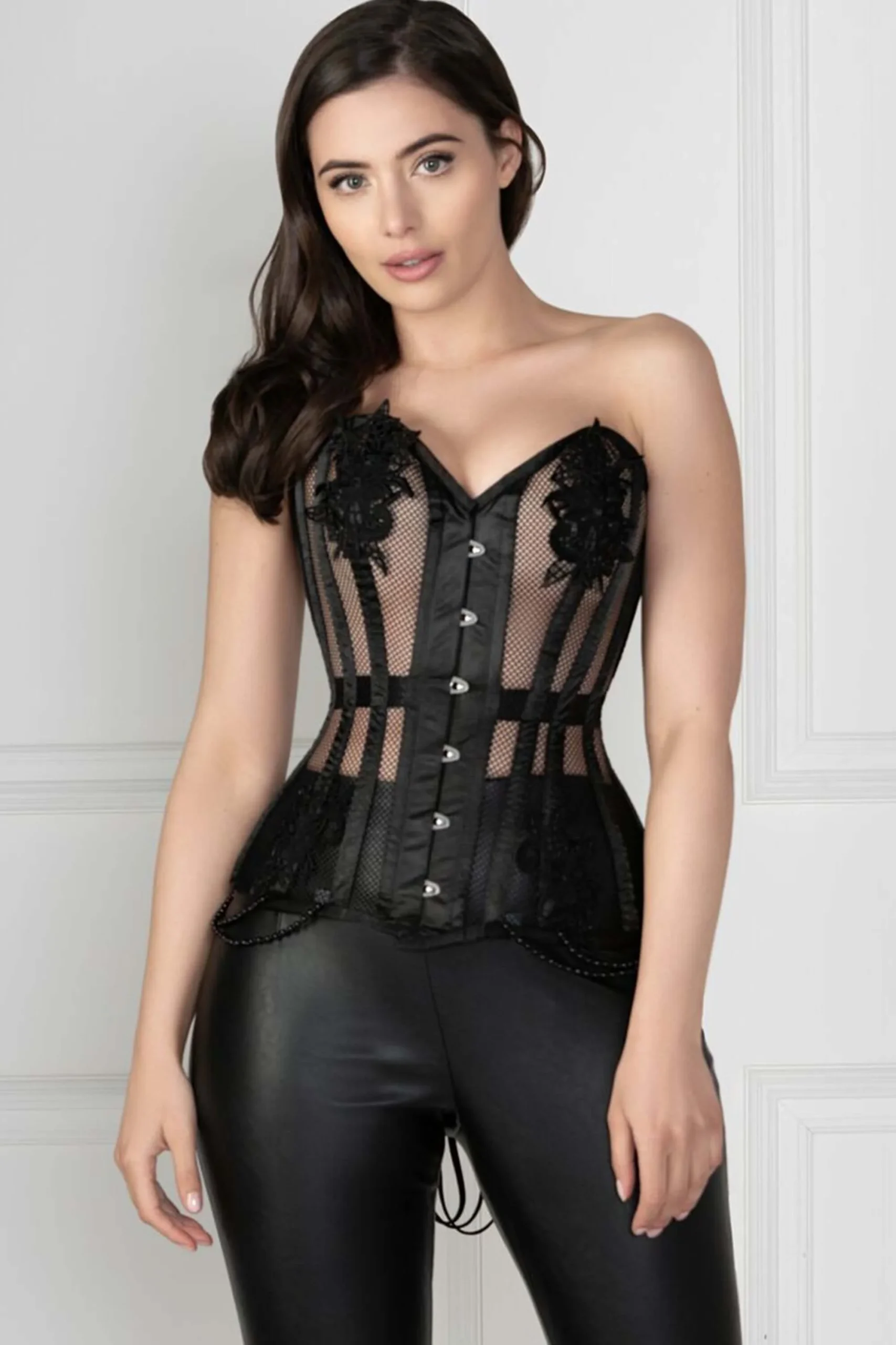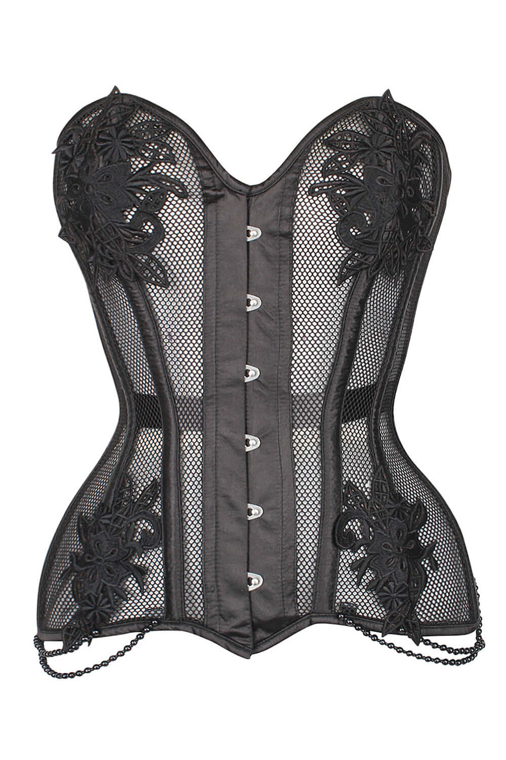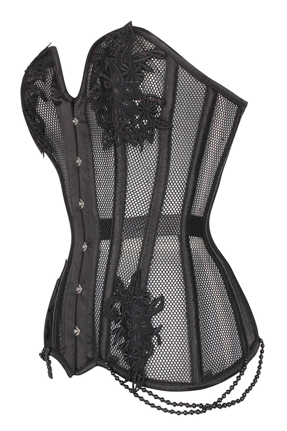 - Caractéristiques du corset : laçage de cordon, busk en acier, panneaux en maille