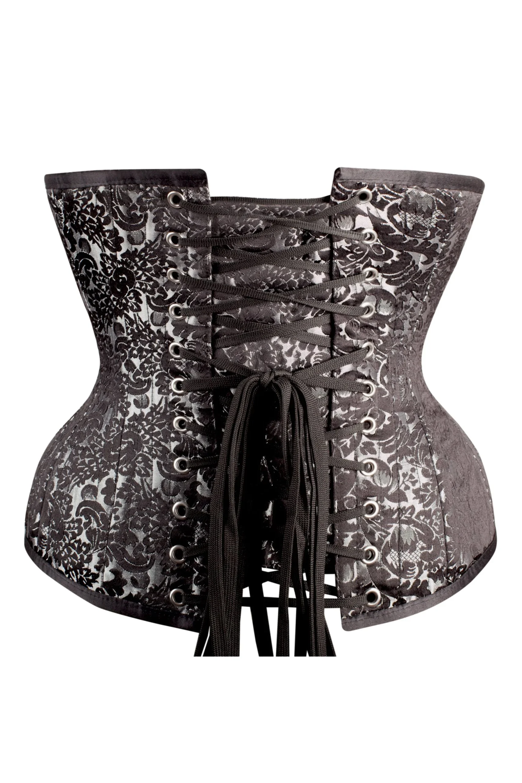 - Caractéristiques du corset : Lacets de cordon, Gores à la hanche, Busk en acier