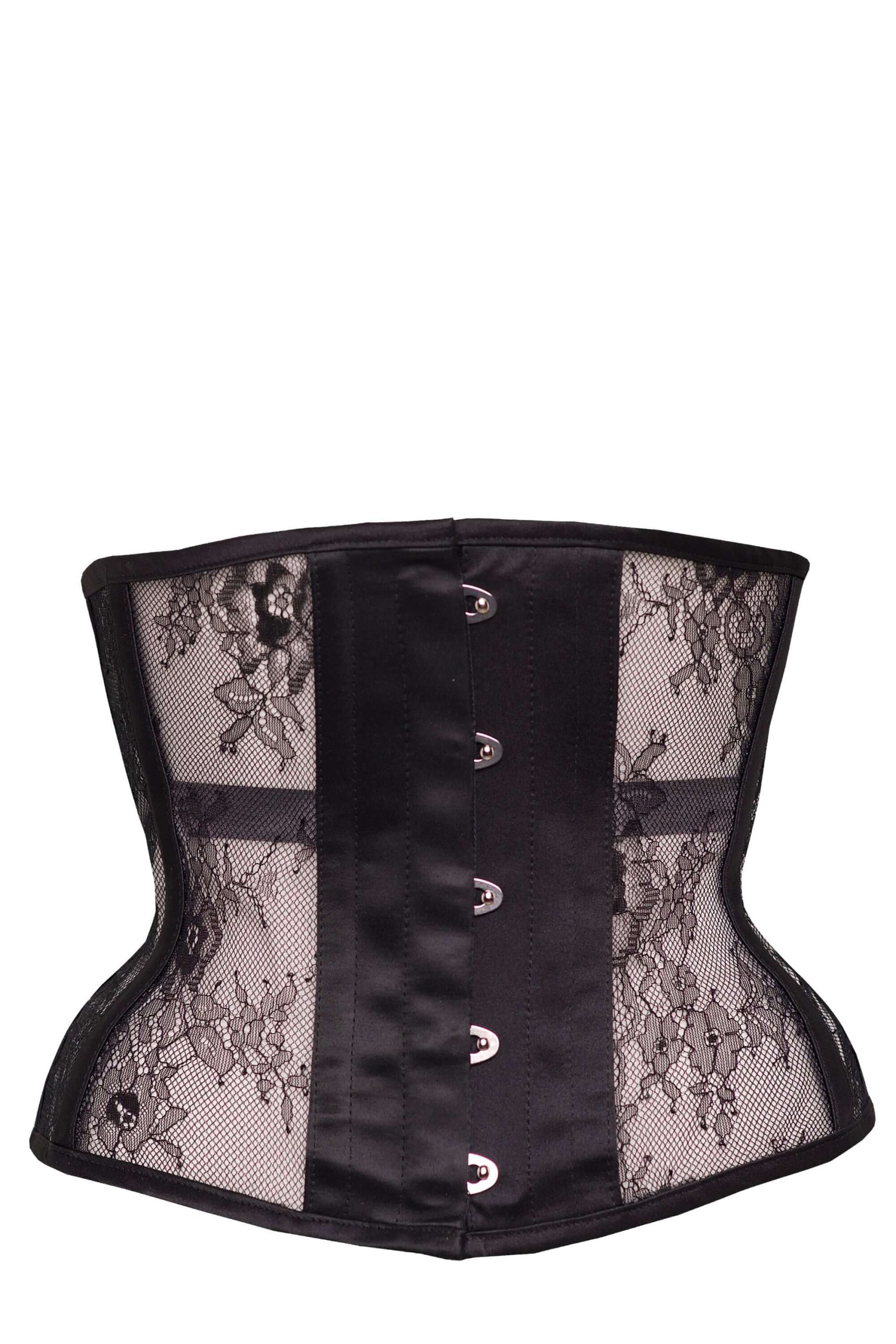 Corset de sous-vêtements léger construit de panneaux en maille avec superposition délicate de dentelle. Jolie et pratique, ce corset est extrêmement portable et sera un excellent ajout à votre collection de lingerie et de corseterie.