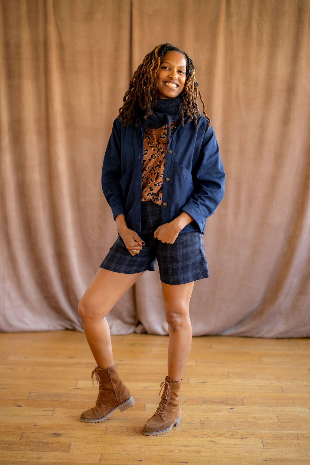 Avec ce kit couture, vous réaliserez Victor, notre short à pinces avec deux poches arrondies sur le devant, dans une version façon lainage à carreaux stylée et confortable.