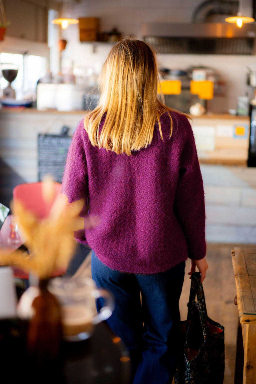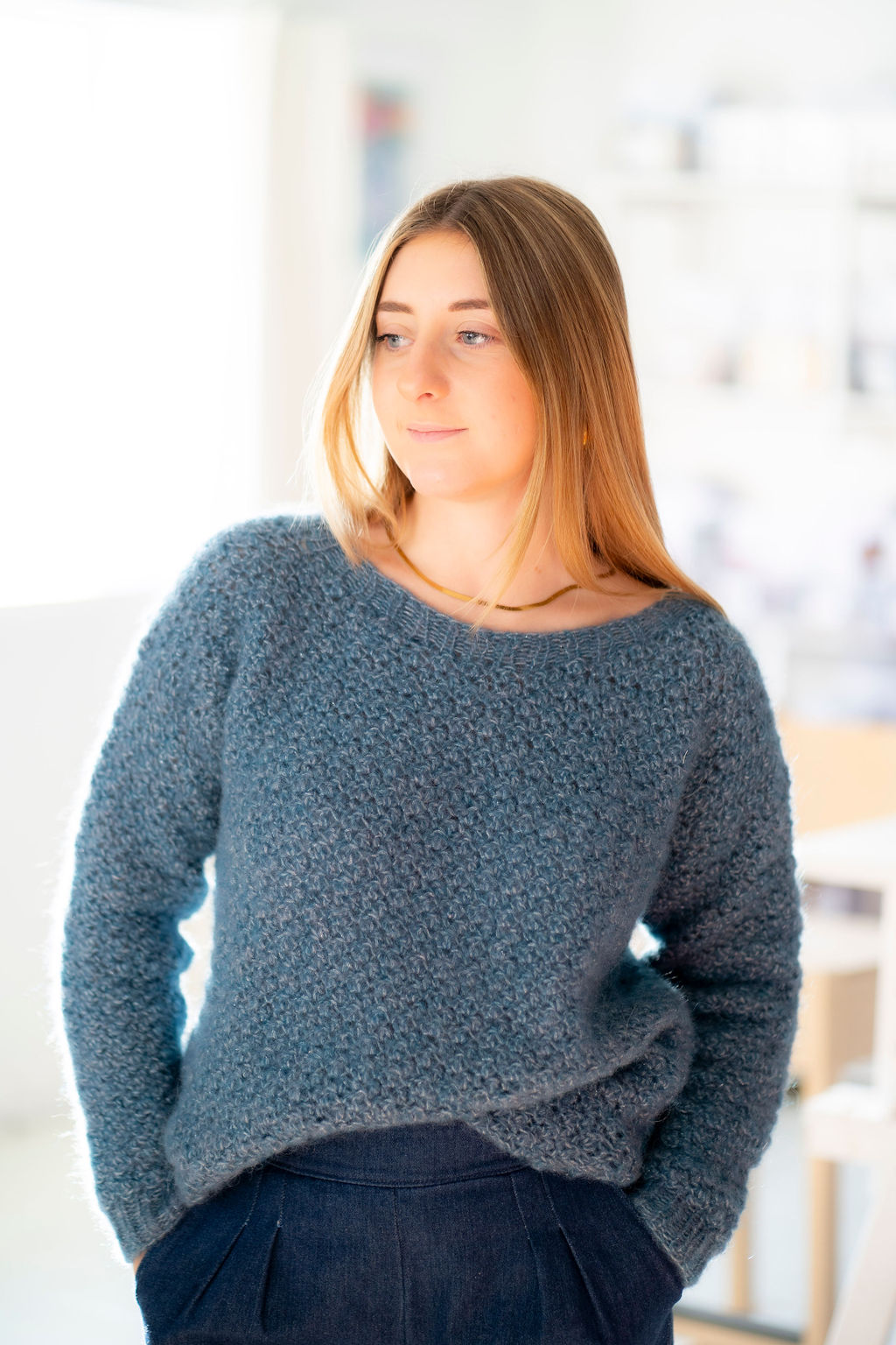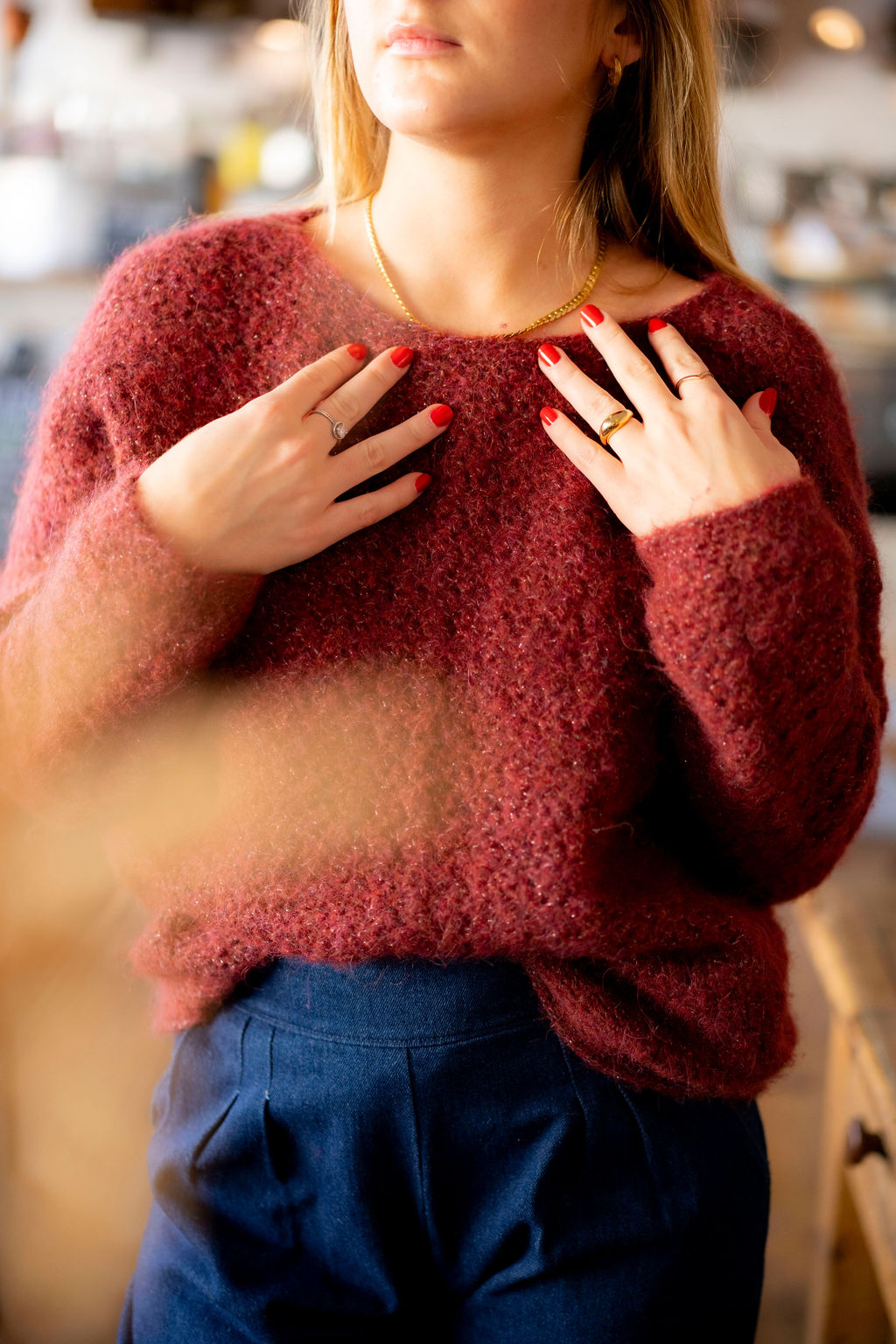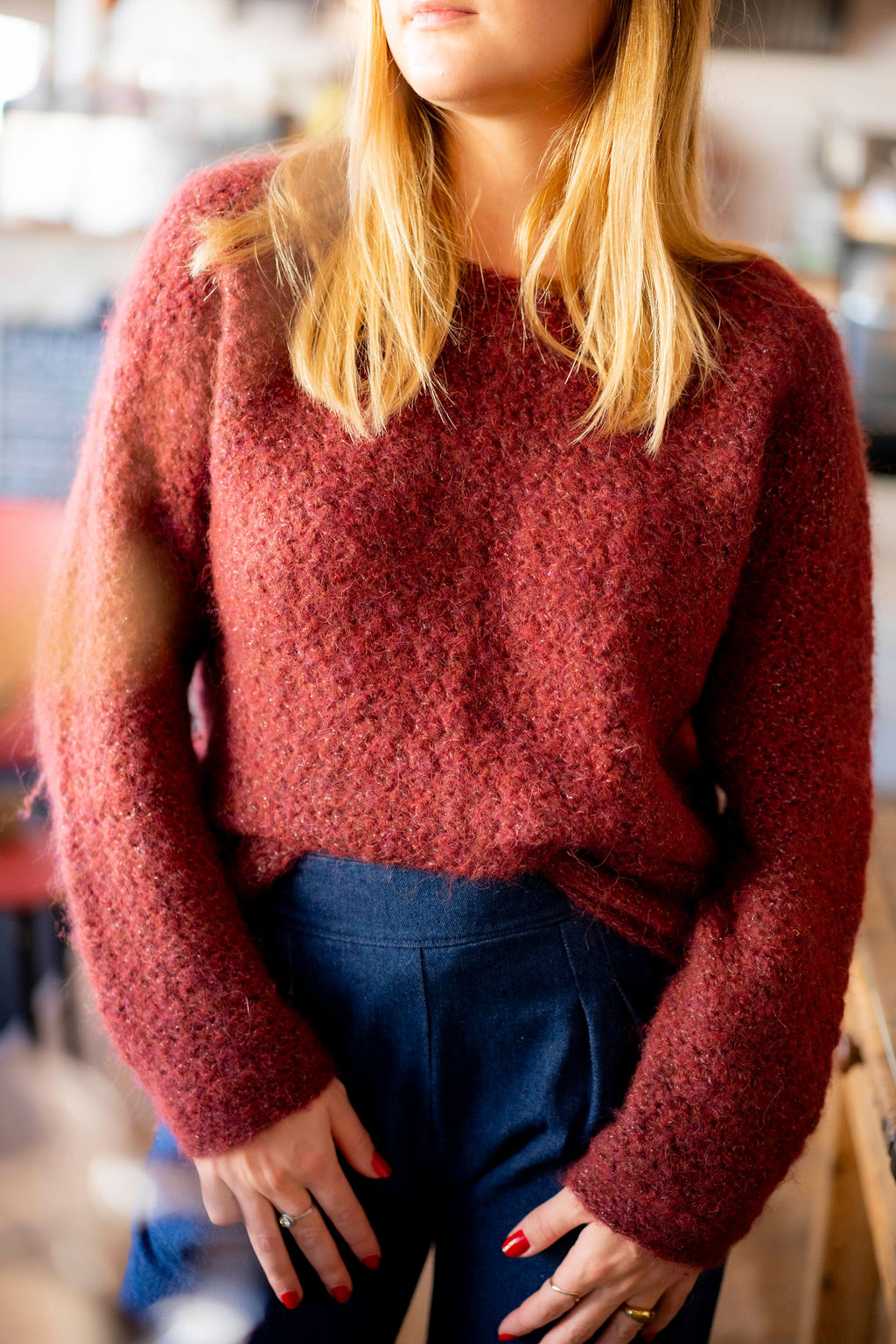 Le fil infusé d’un brin argenté discret donne un petit éclat qui magnifie le rendu sans être trop voyant, et l’alpaga apporte chaleur, douceur et légèreté.