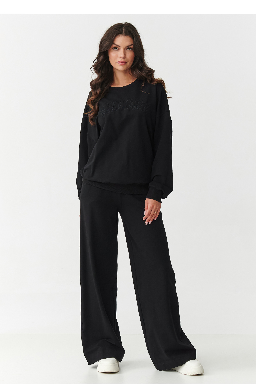 Misez sur le mélange de confort et de look tendance avec l’ensemble de survêtement pour femmes, qui convient parfaitement aussi bien pour tous les jours que pour des sorties décontractées ou des moments de détente à la maison. Fabriqué dans un tissu doux et respirant composé de 95% coton et 5% élasthanne, il garantit un confort optimal et s’adapte parfaitement à la silhouette sans entraver les mouvements. La partie supérieure de l’ensemble est un sweat-shirt classique avec un col rond et une encolure légèrement descendue. Il a une coupe légèrement oversize qui donne une allure décontractée et moderne à la tenue. Sa particularité est soulignée par l’application brodée du logo à l’avant, qui ajoute de l’originalité et du style subtil à l’ensemble. Le pantalon se distingue par sa coupe moderne avec des jambes larges, qui s’ajustent joliment au mouvement et donnent à la silhouette de la légèreté tout en équilibrant les proportions. La taille élastique et les poches pratiques augmentent la fonctionnalité et le confort de port. Un choix idéal pour toutes les saisons, le survêtement avec des jambes larges et une broderie est un incontournable dans la garde-robe féminine. Confort, qualité et look tendance dans un seul ensemble!