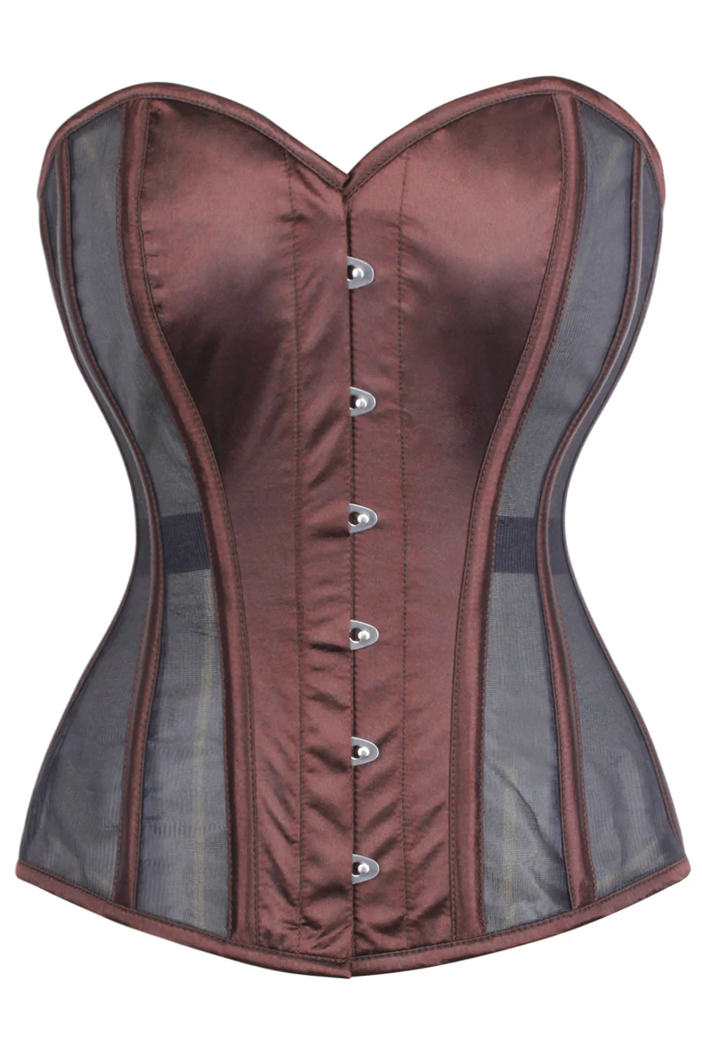 - Caractéristiques du corset : laçage ruban, busk en acier, panneaux en maille