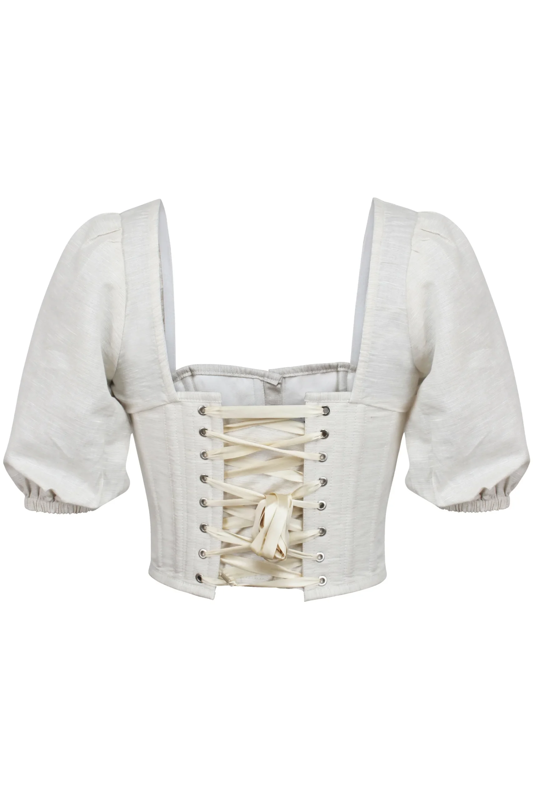 Moderne et chic, notre top corset cropped en lin mélangé sophistiqué est conçu pour être porté avec notre jupe Olive pour un ensemble corset ultime.
