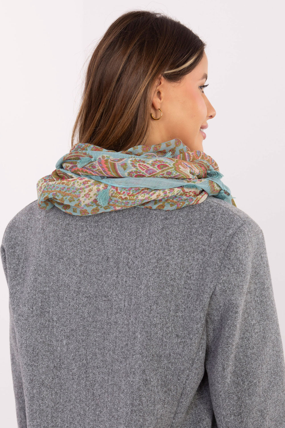 Le foulard avec un motif intéressant et des franges est un accessoire à la mode et polyvalent qui ajoutera du caractère à chaque tenue. Le motif élégant attire l’œil et anime à la fois les tenues simples et plus classiques. Le format carré de 110 × 110 cm permet de styler le foulard de nombreuses façons – porté autour du cou, sur les épaules, comme une écharpe ou un accessoire de sac. Les franges lui donnent légèreté et un caractère bohème subtil, en faisant un choix idéal pour tous les jours et les occasions spéciales.