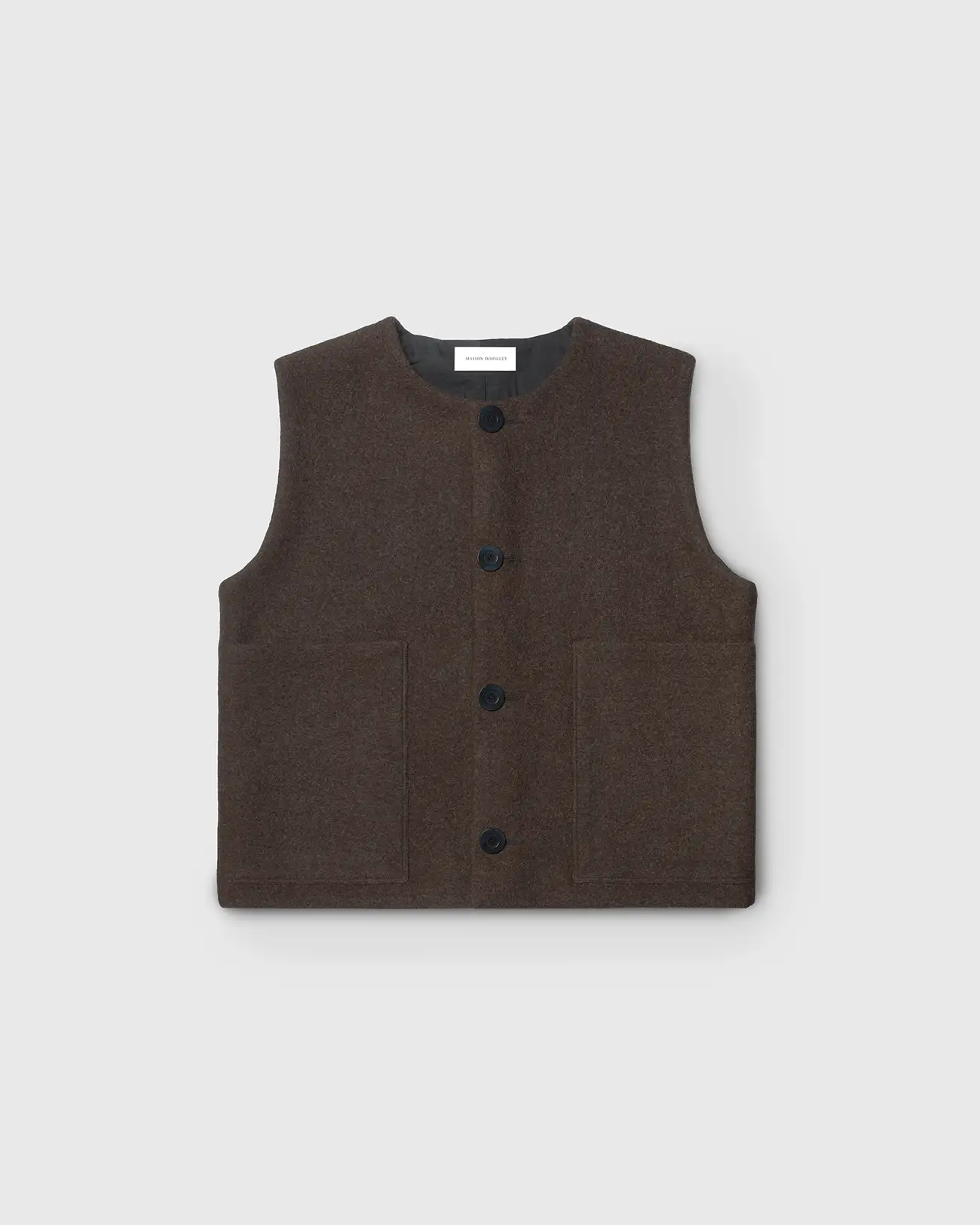 Son extérieur en laine bouillie lui confère un aspect rustique et délicat à la fois.