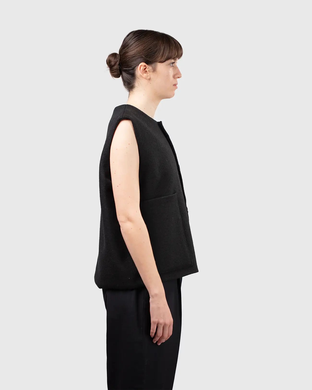 La forme sobre et stricte est complété par une encolure ronde – apportant de la douceur à l’ensemble.