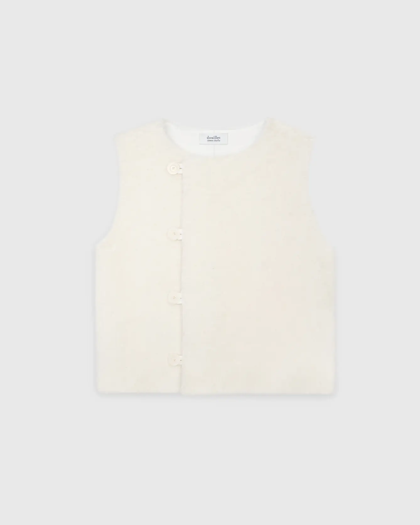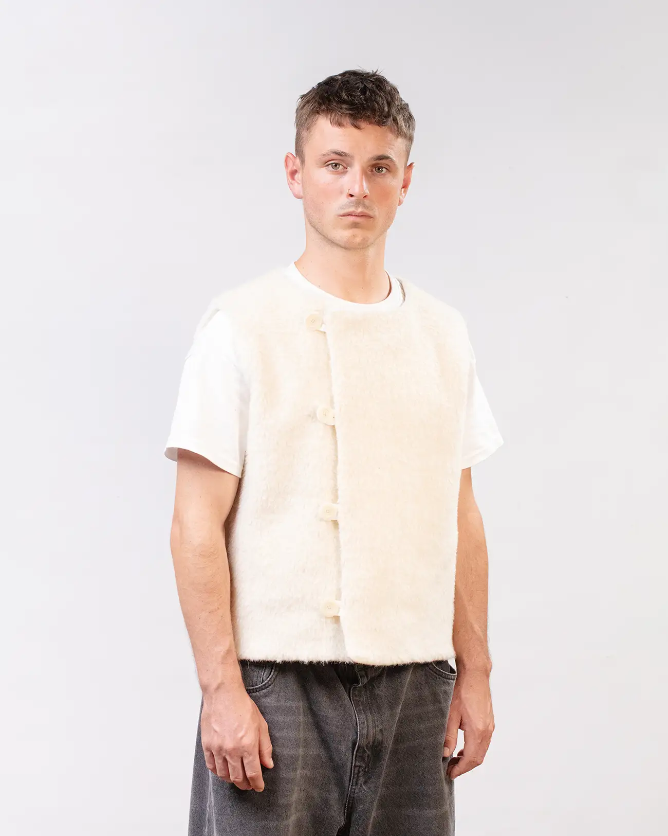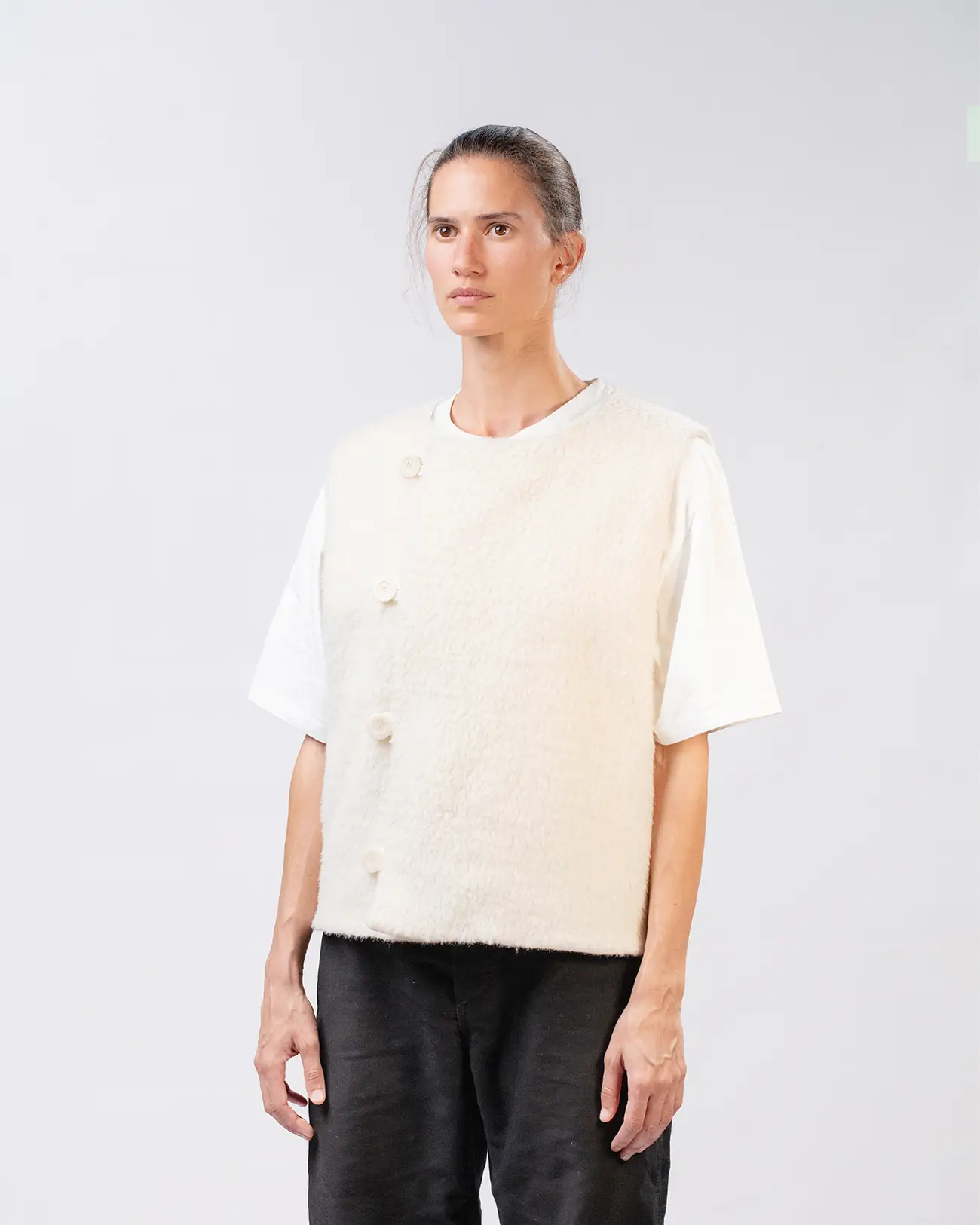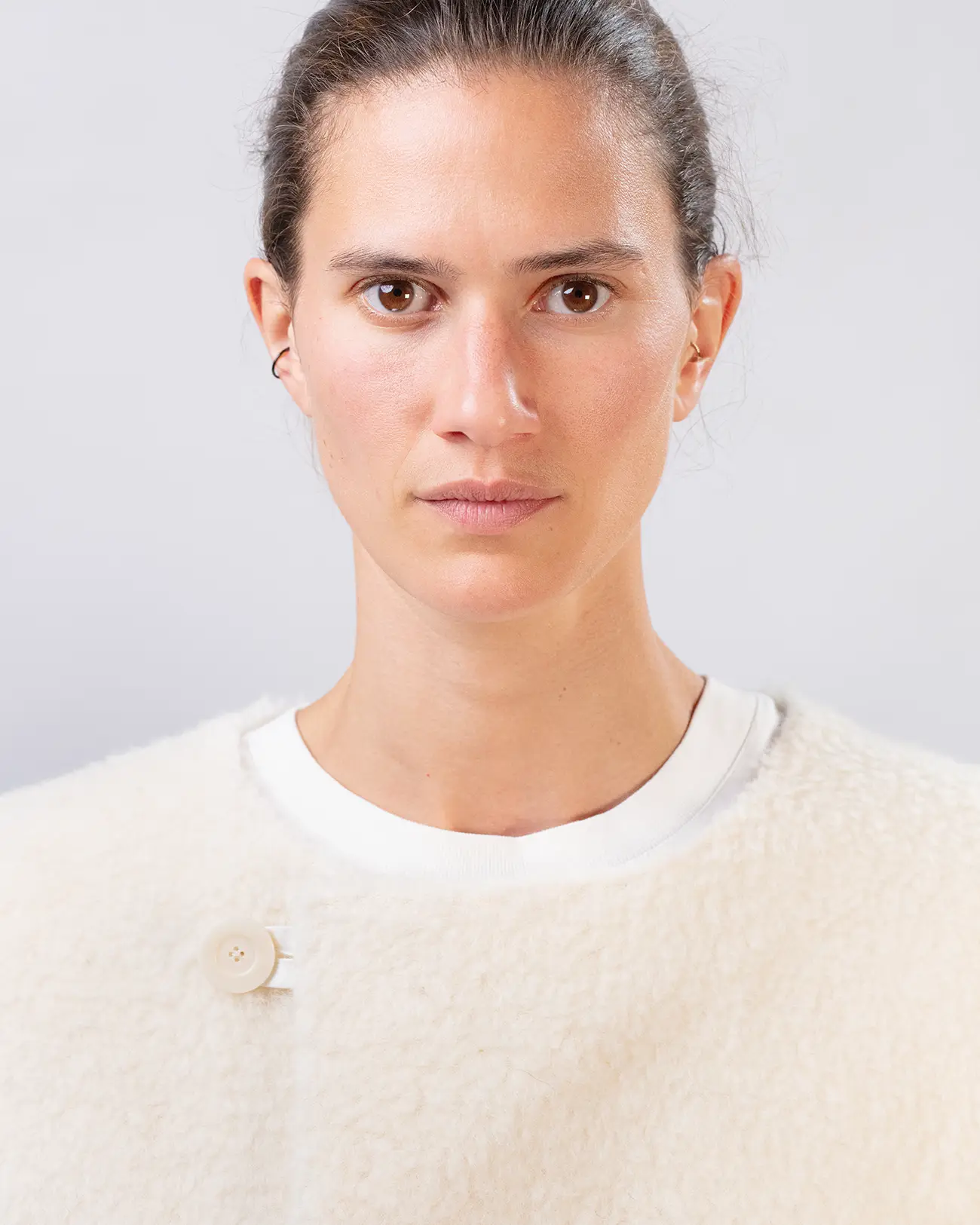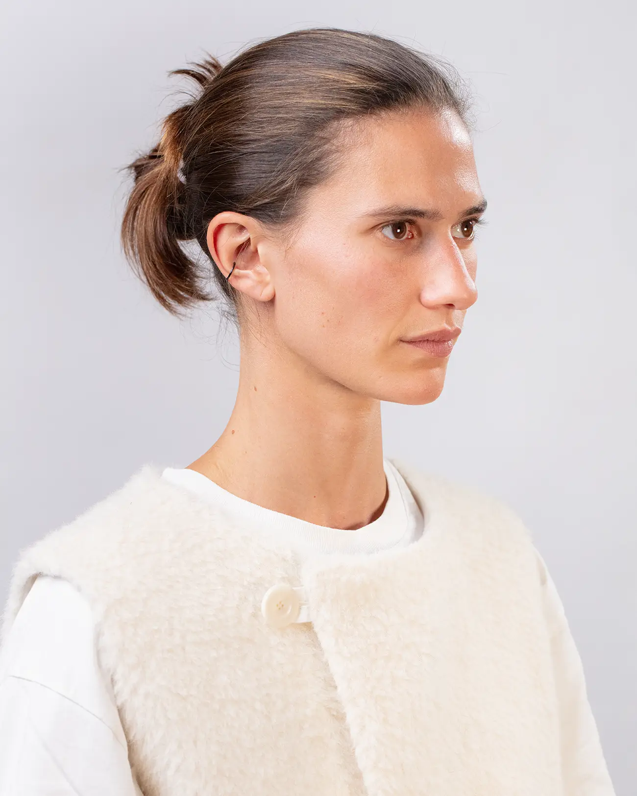 Ce Gilet Fourrure en Laine s’inspire du passé pastoral des Alpes – et de notre relation unique avec les montagnes. Il est réalisé dans une fausse fourrure de pure laine Islandaise, non teinte – issue d’un processus de fabrication innovant. C’est une pièce universelle et authentique, se mariant avec des tenues pratiques du quotidien et les tenues habillées.