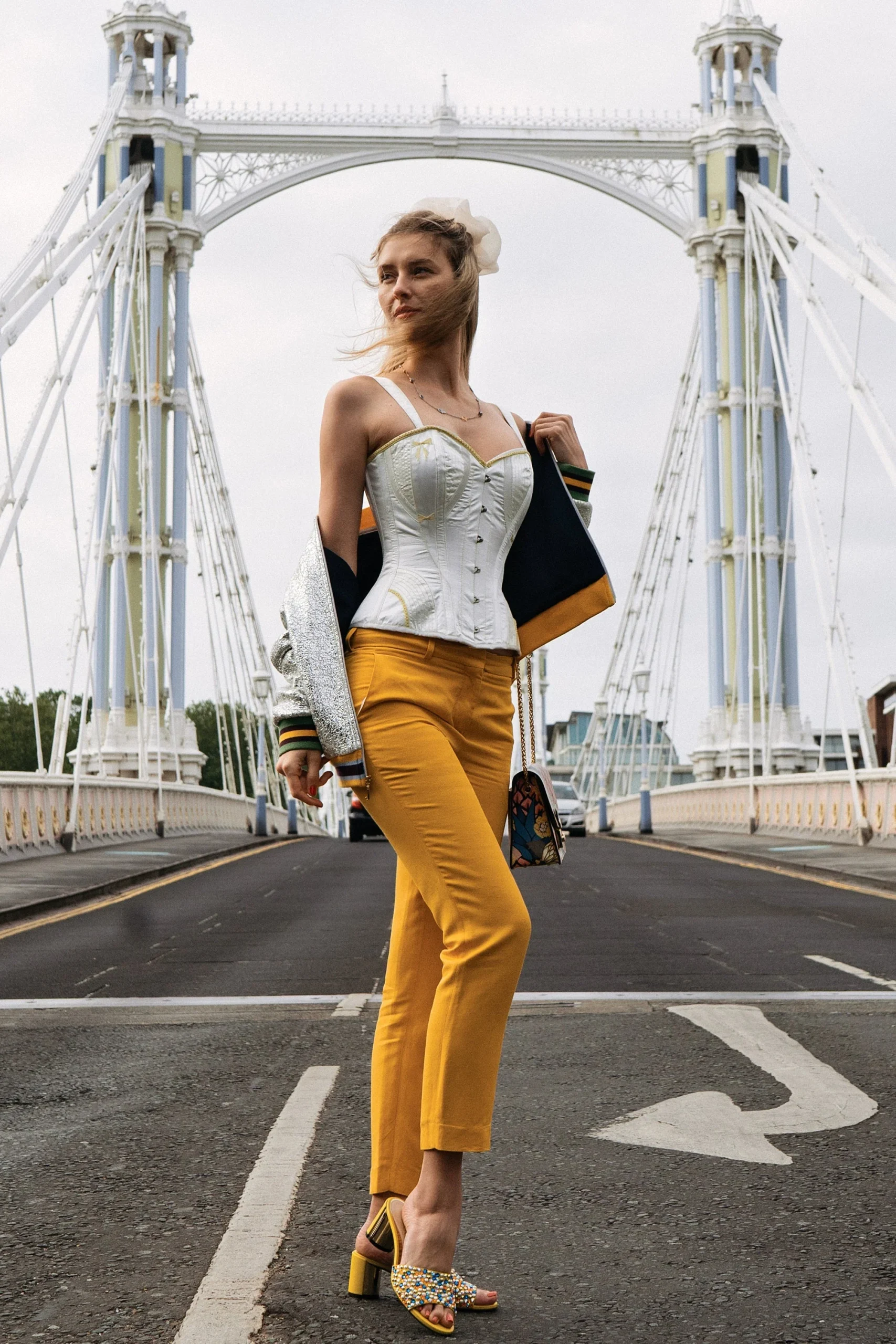 - Caractéristiques du corset : laçage ruban, panneaux en maille, busk en acier, bretelles