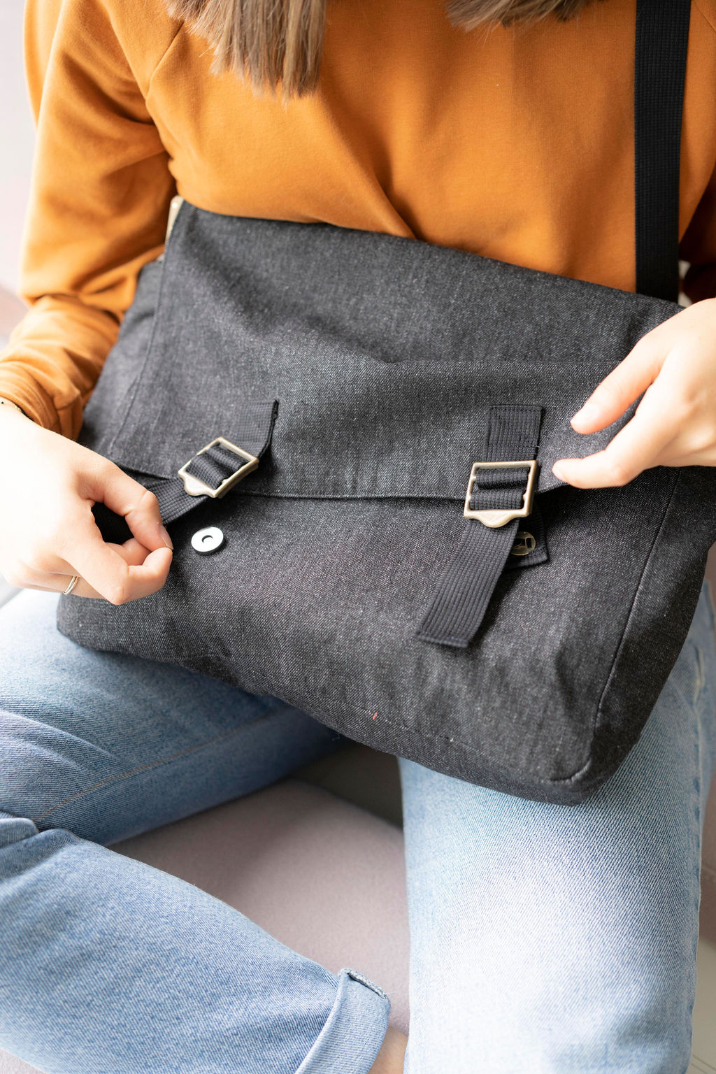 Avec ce kit vous réaliserez Marty une grande besace US en jean twisté par un imprimé en doublure. C’est le sac pratique dans lequel vous pourrez transporter ordinateur, pochettes et autres trieurs et que vous adorerez assortir à vos tenues !