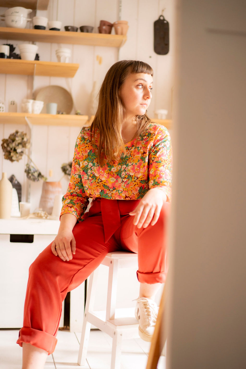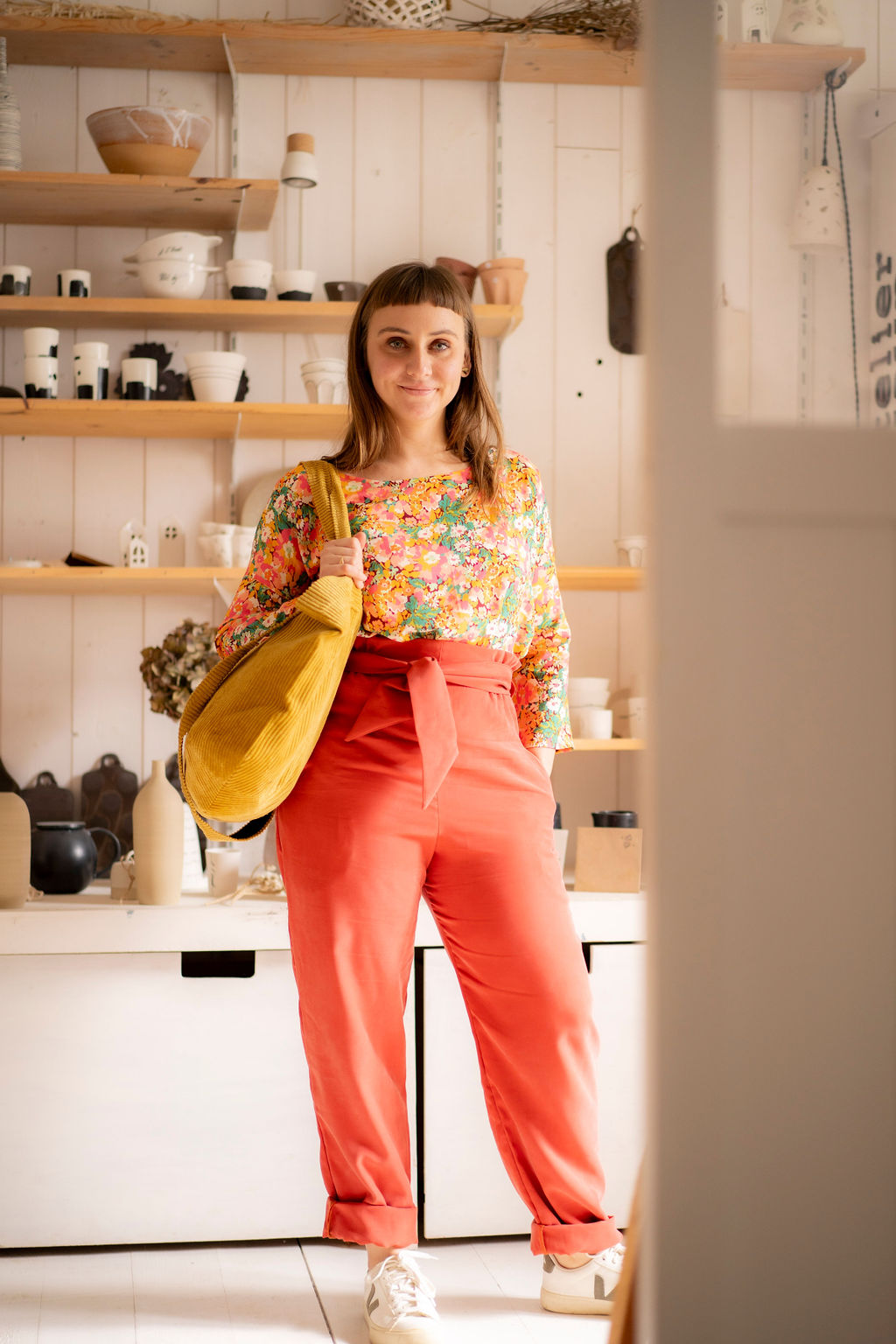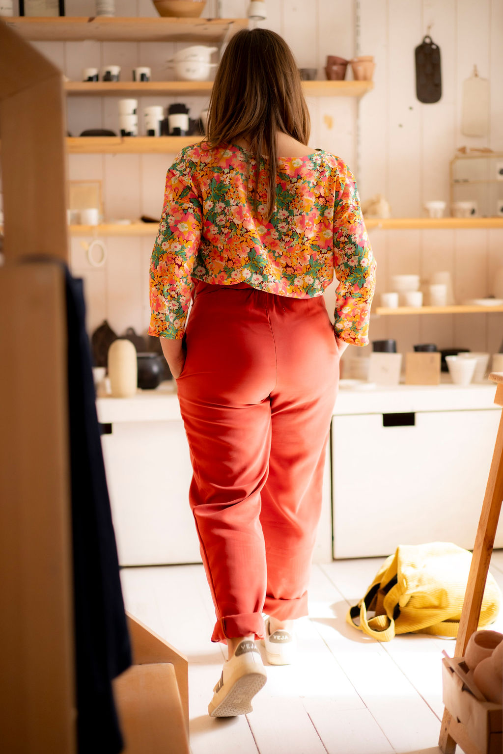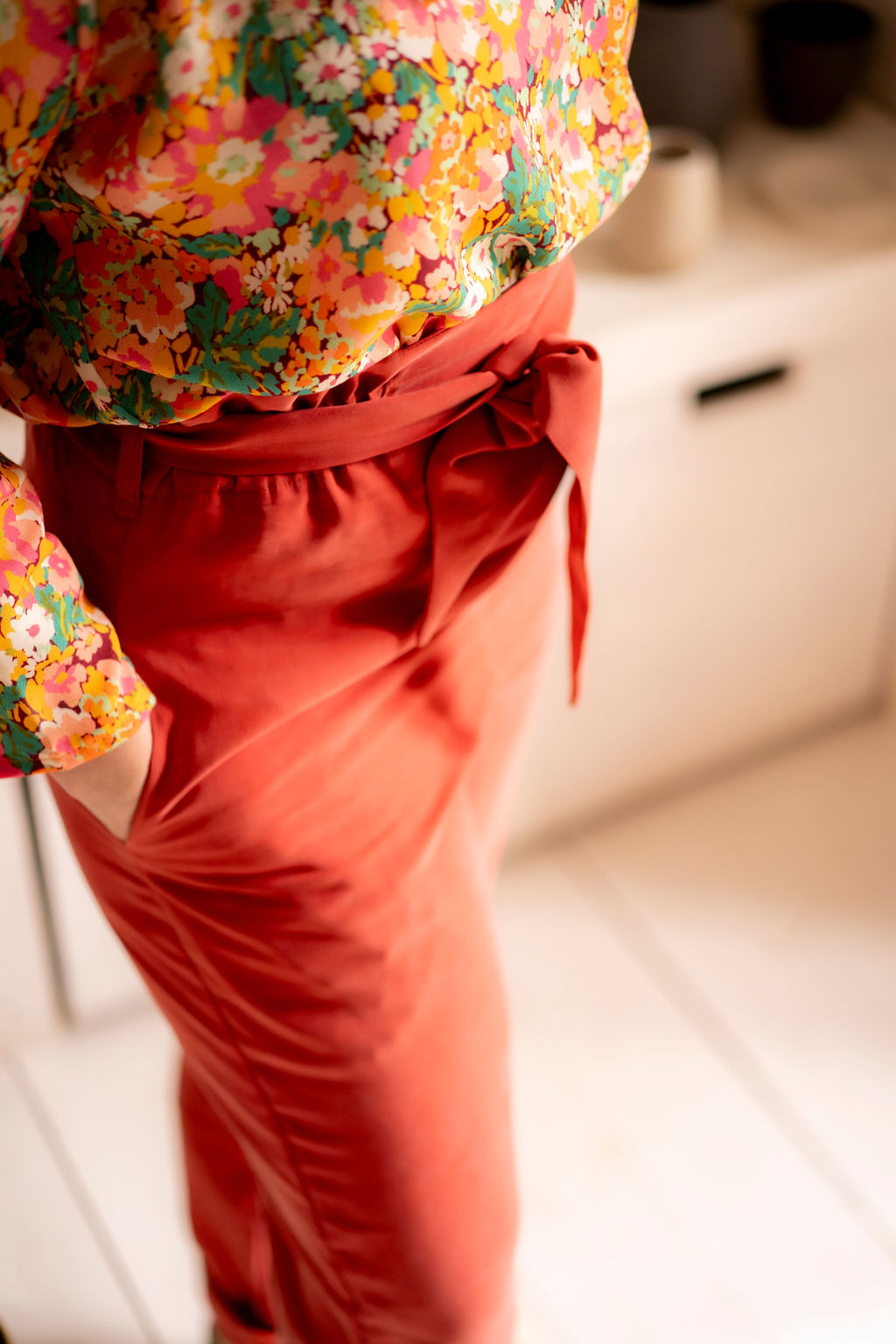 Lewis est un modèle que nous avons imaginé autour de trois axes : facilité, rapidité d’exécution et “waouh effect”. Un pantalon aux multiples allures possibles, tantôt décontracté, tantôt chic, selon le tissu choisi et que l’on peut réaliser rapidement grâce à son montage simple ! Nous avons également beaucoup travaillé la fourche et la ceinture pour que la forme se pose bien sur la taille et soit élégante à porter (patron du 34 au 50). A vous de choisir la finition de la taille : paper-bag (avec les “froufrous”) ou avec une ceinture classique.